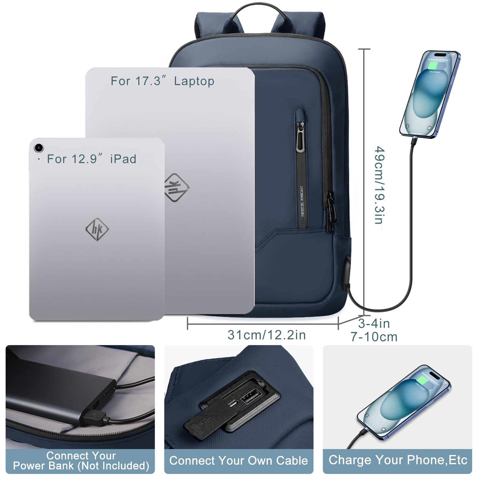 【USB PORT DESIGN】With outside USB charging port and inside charging cable, this laptop bag with USB port offers an easy access to charge your phone when you are carrying a computer backpack on the road. (POWER BANK is not included)