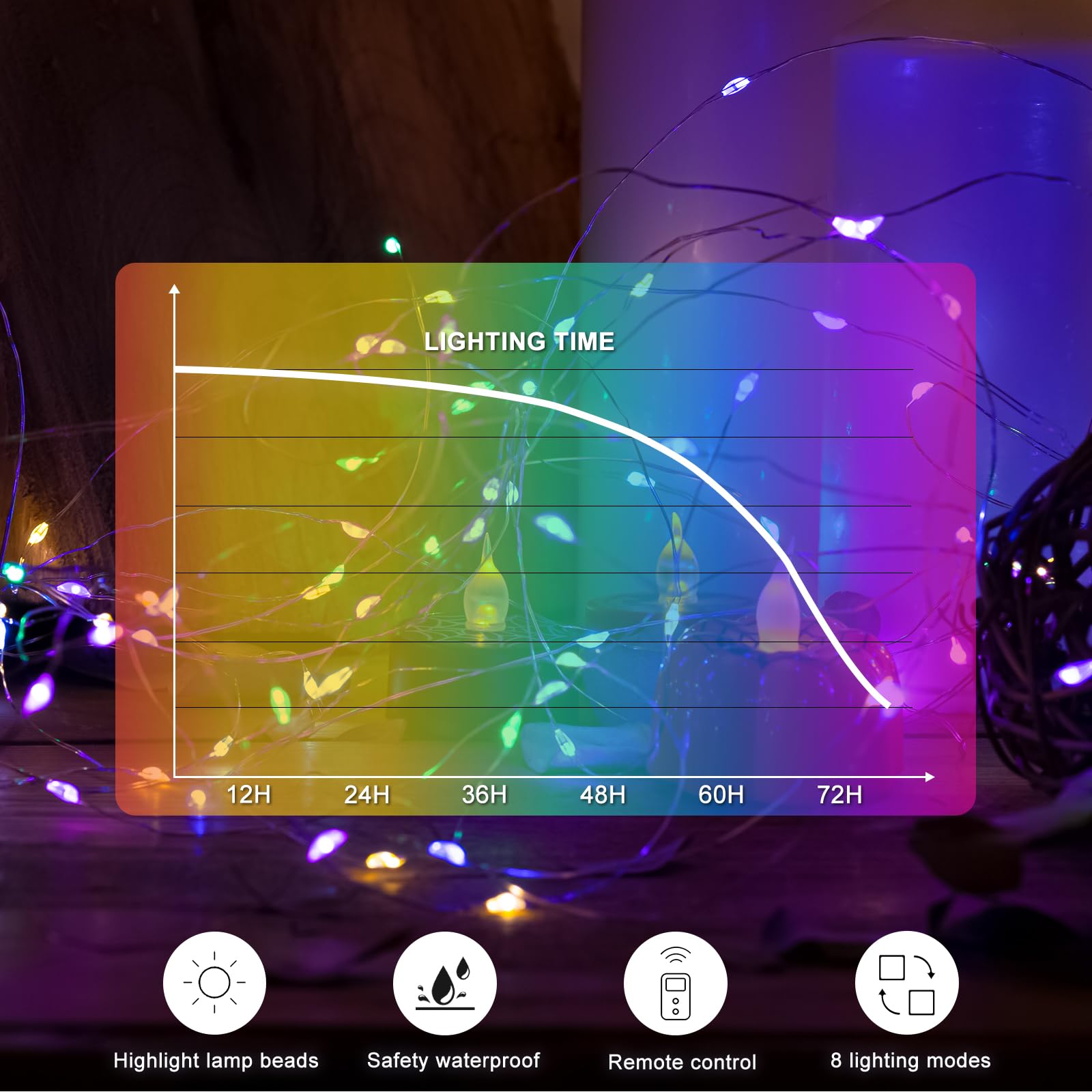 Timer Function: Unlike others, our remote mini sting lights provide 4 timing modes, 2/4/6/8 hours On and 22/20/18/16 hours Off automatically every 24hrs once TIMER activated; No manual operations required; Free your hands