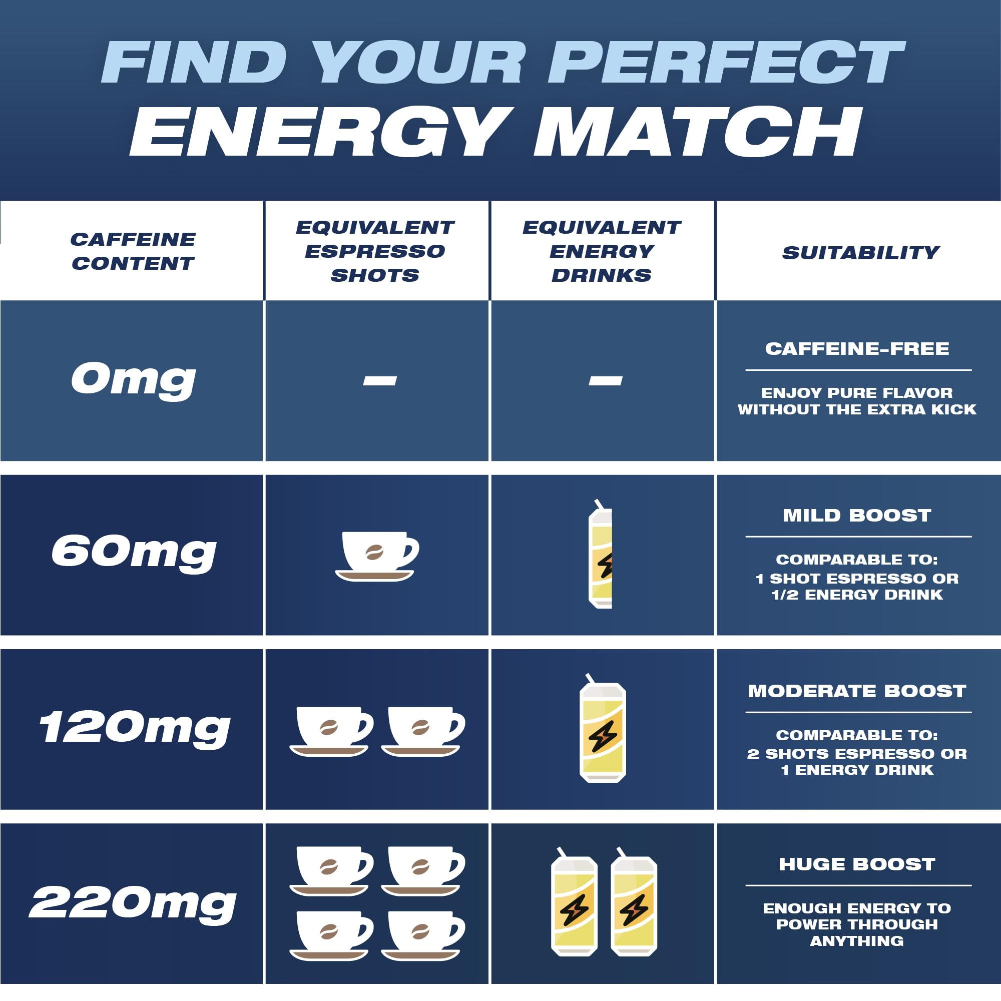 Strength - Each energy pouch contains zero caffeine nicotine or tobacco, simply get the taste and feed the habit of your regular pouches. Perfect for helping kick bad habits or in the evenings when you want to lay off caffeine. We also offer a range of strength caffeine pouches in all flavors.