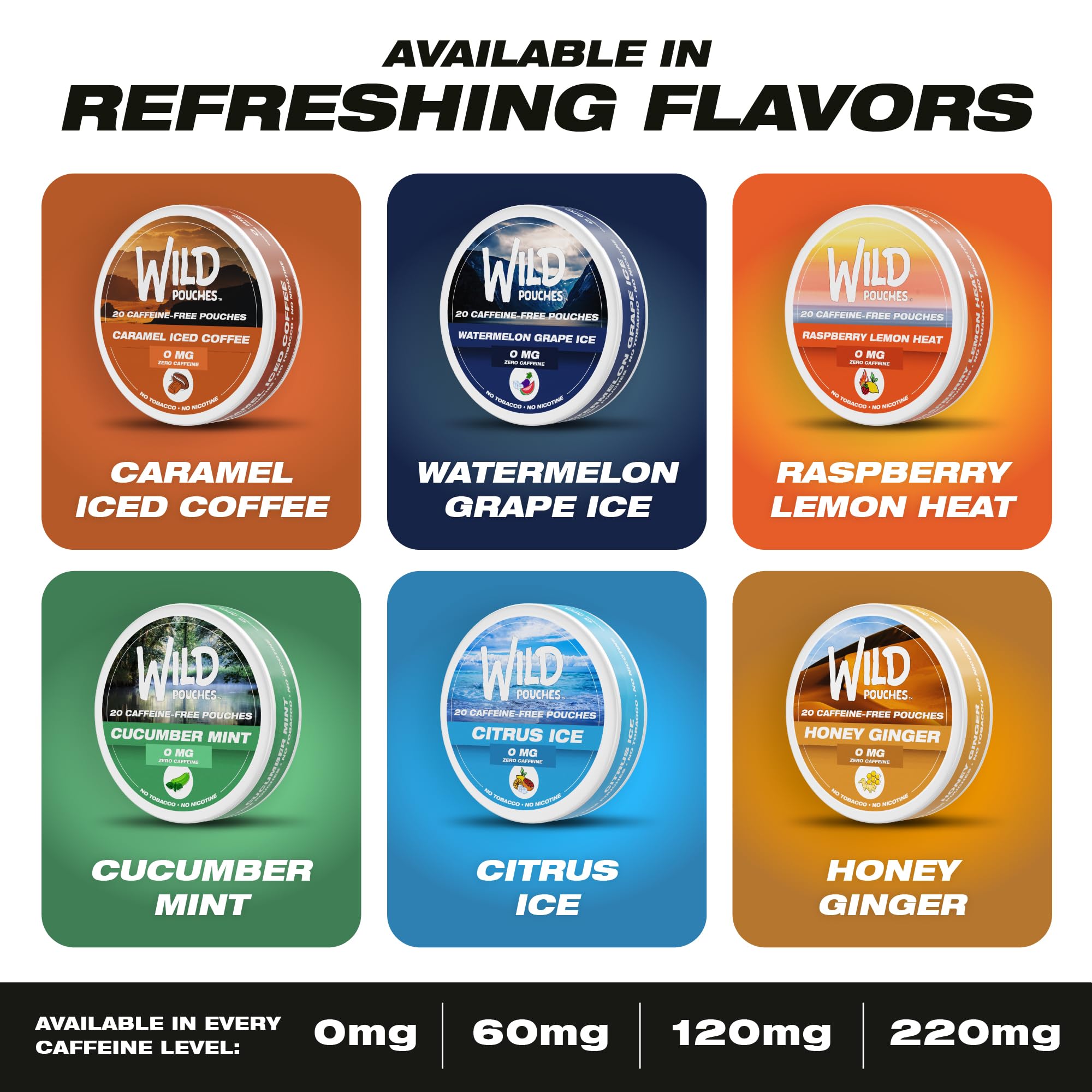 Flavored No Nicotine Pouches - Each puck contains 20 Iced Watermelon Grape pouches. At Wild we offer a large range of flavors, so there truly is something for everyone!