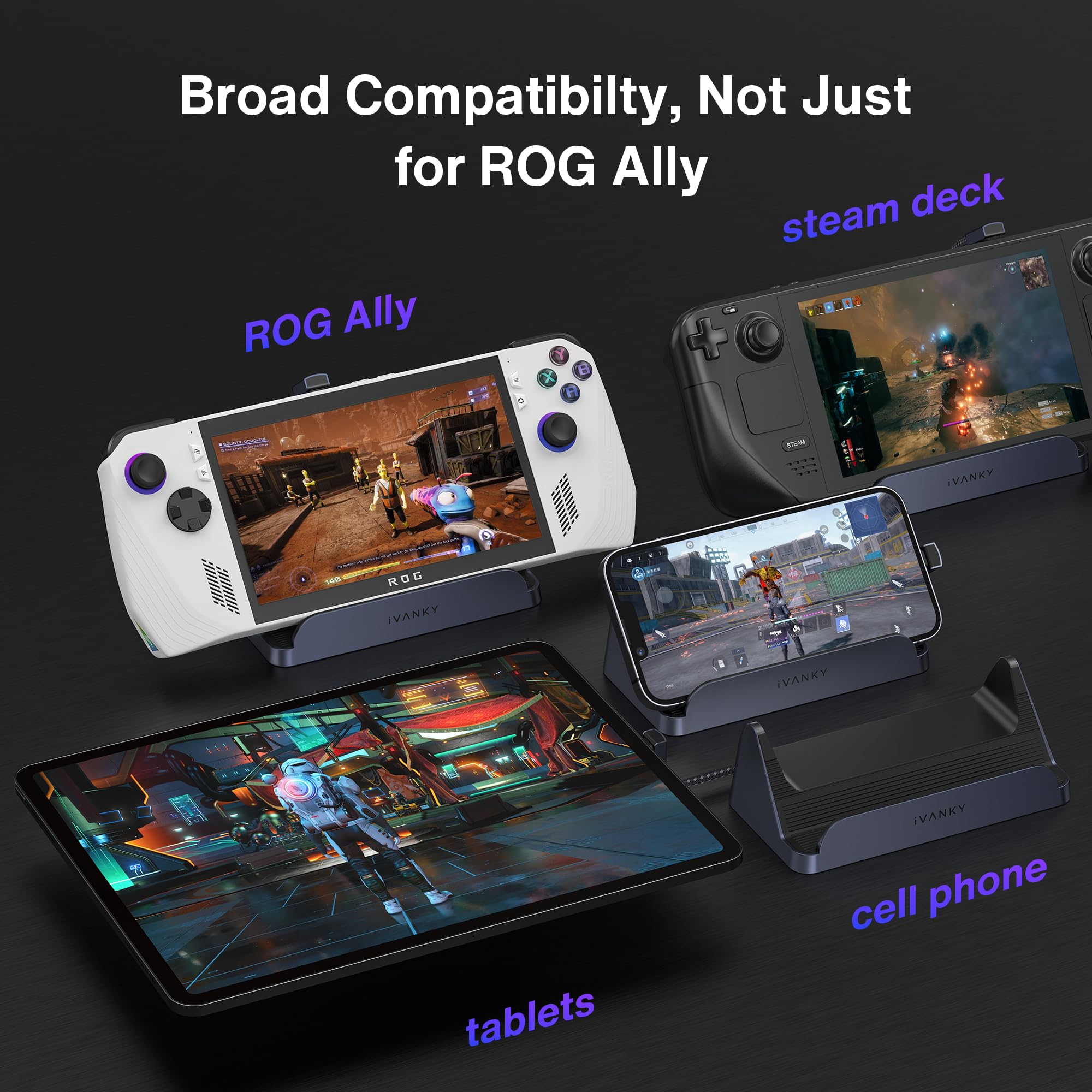 【Fast Charge Dock】Delivers up to 100W PD charging—65W for ROG Ally and 45W for Steam Deck. Minimize downtime between battles while maintaining peak performance.