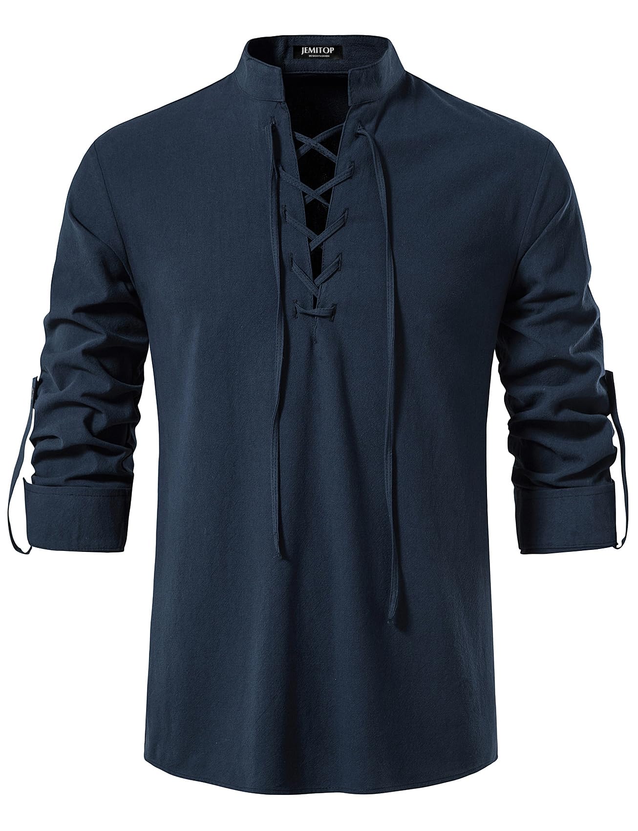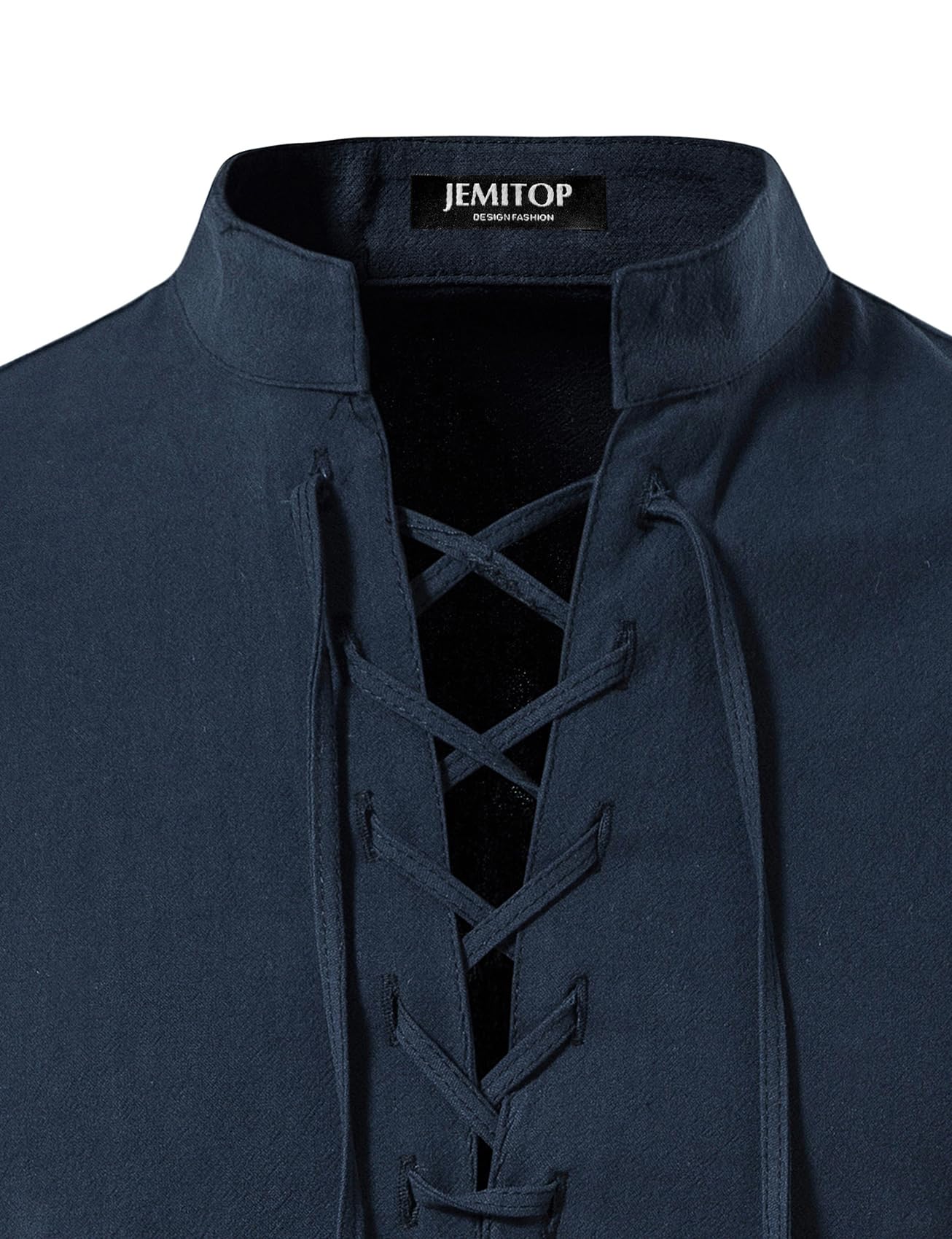 Design Concept: Cosplay costume for renaissance,pirate,viking,medieval,halloween / Retro drawstring shirt / Regular fit / Mandarin collar / Long sleeve / Rolled sleeve