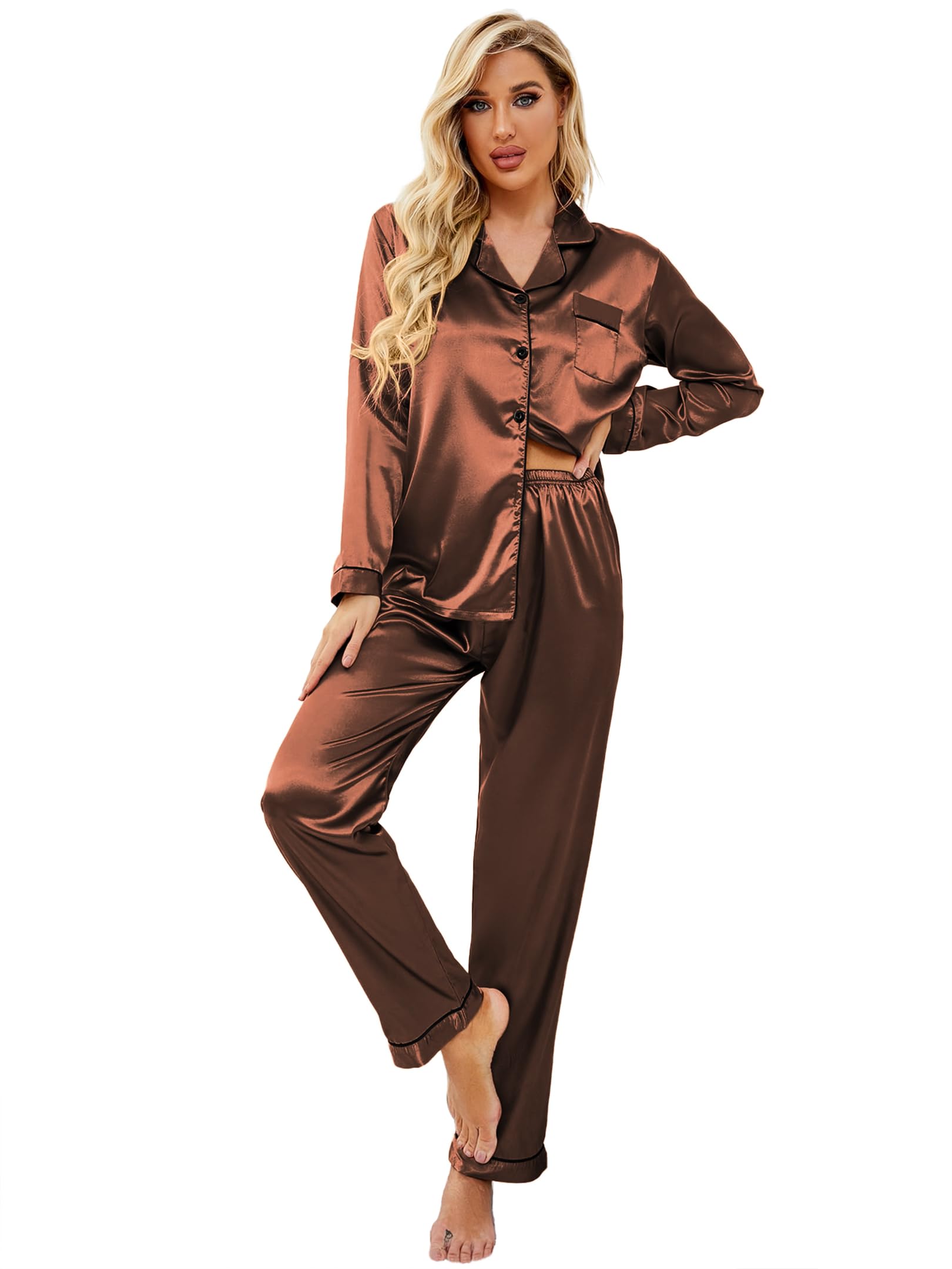 MATERIAL:The pajamas set is made of premium satin fabric,skin friendly,breathable,lightweight,keeps easeful sleeping at night