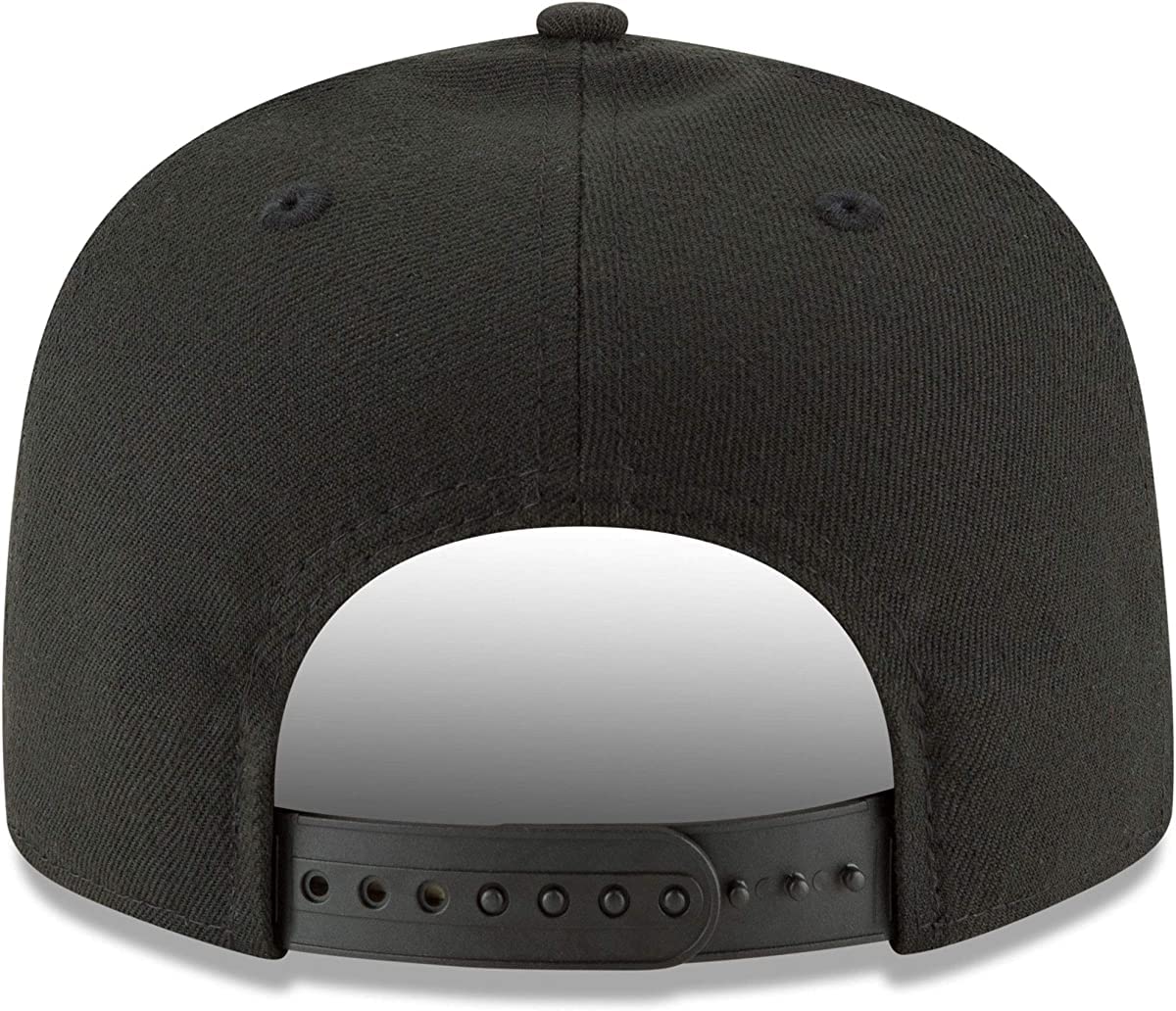 Description The Black & White 9FIFTY Snapback Cap is made of 100% polyester and completed with a snapback rear closure. The snapback closure allows for one size fits most sizing. White Raised Embroidery of your favorite team's logo on the front of the cap makes the Black & White 9FIFTY pop. The cap is completed with the iconic New Era Flag in white on the left side.