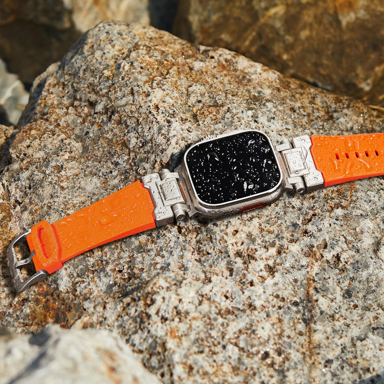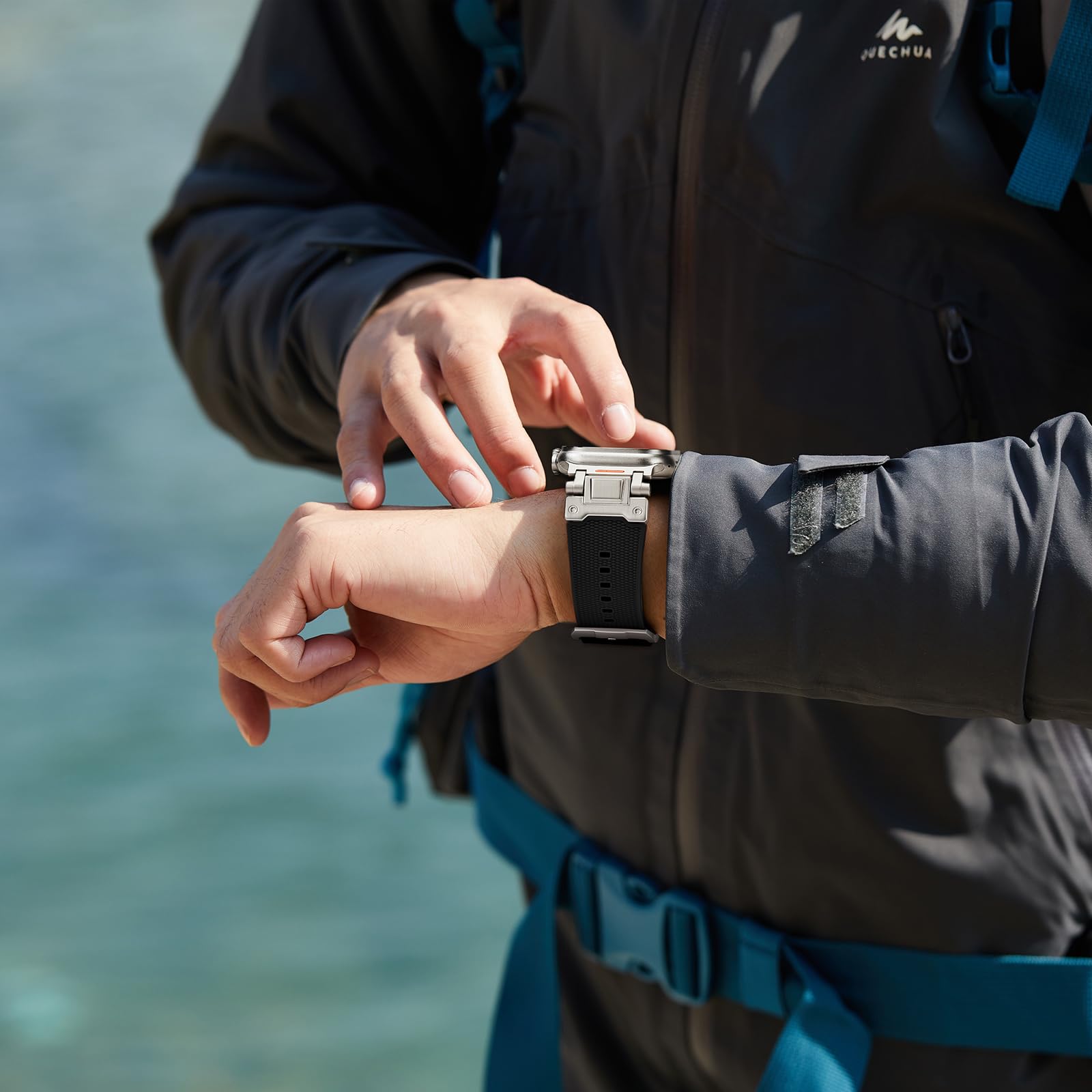 Go-to Band for Workout: We’ve reinforced the stainless steel clasp on this apple ultra watch band for extra secure lock that gives peace of mind along your active journey. The waterproof apple watch band silicone is ready for everyday wear and tear.