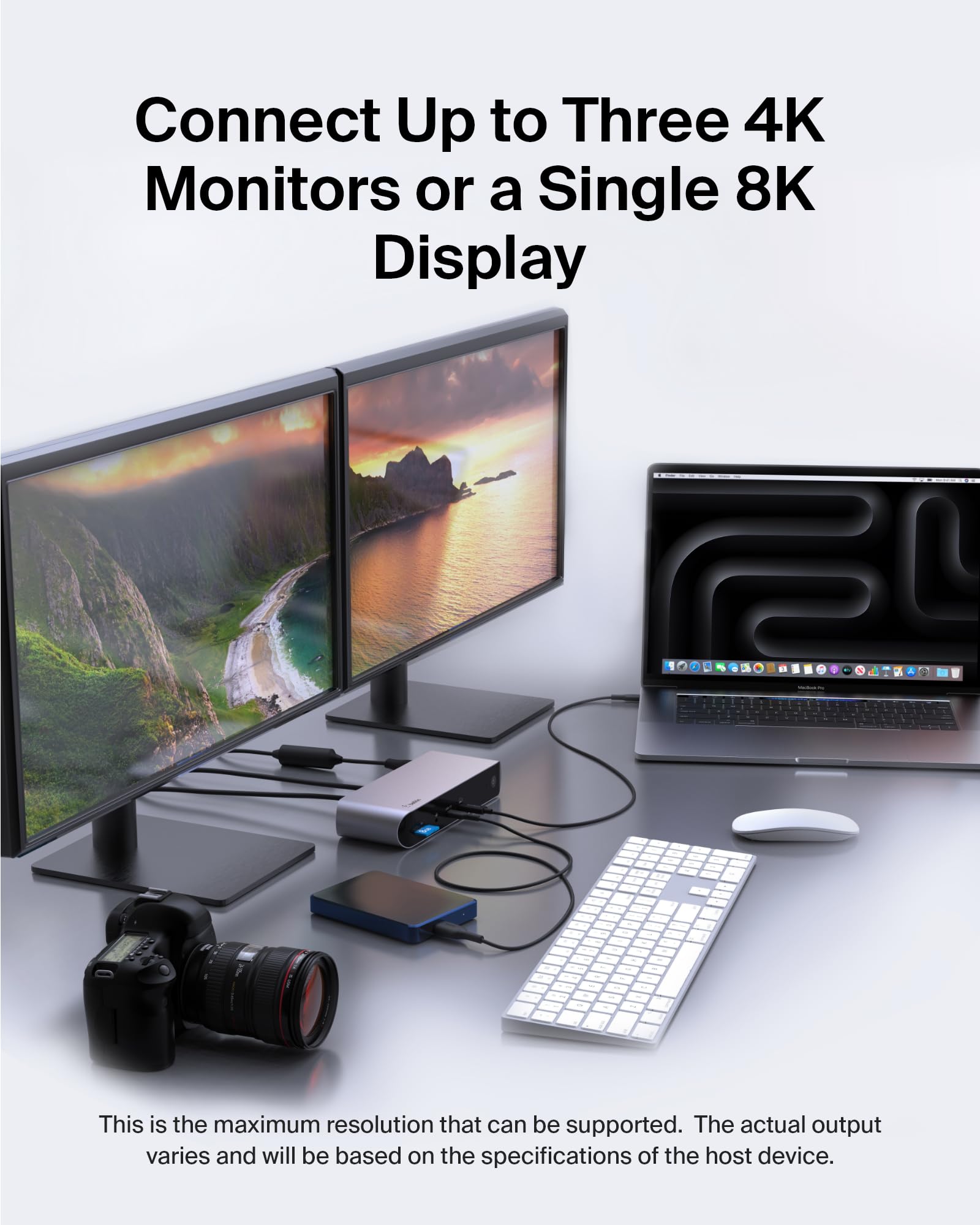 8K MONITOR RESOLUTION SUPPORT: Connect your MacBook, Windows, or other compatible device to a smooth, vivid, and immersive visual experience. Get up to 8K resolutions for a single display or 2x 4K for dual displays.