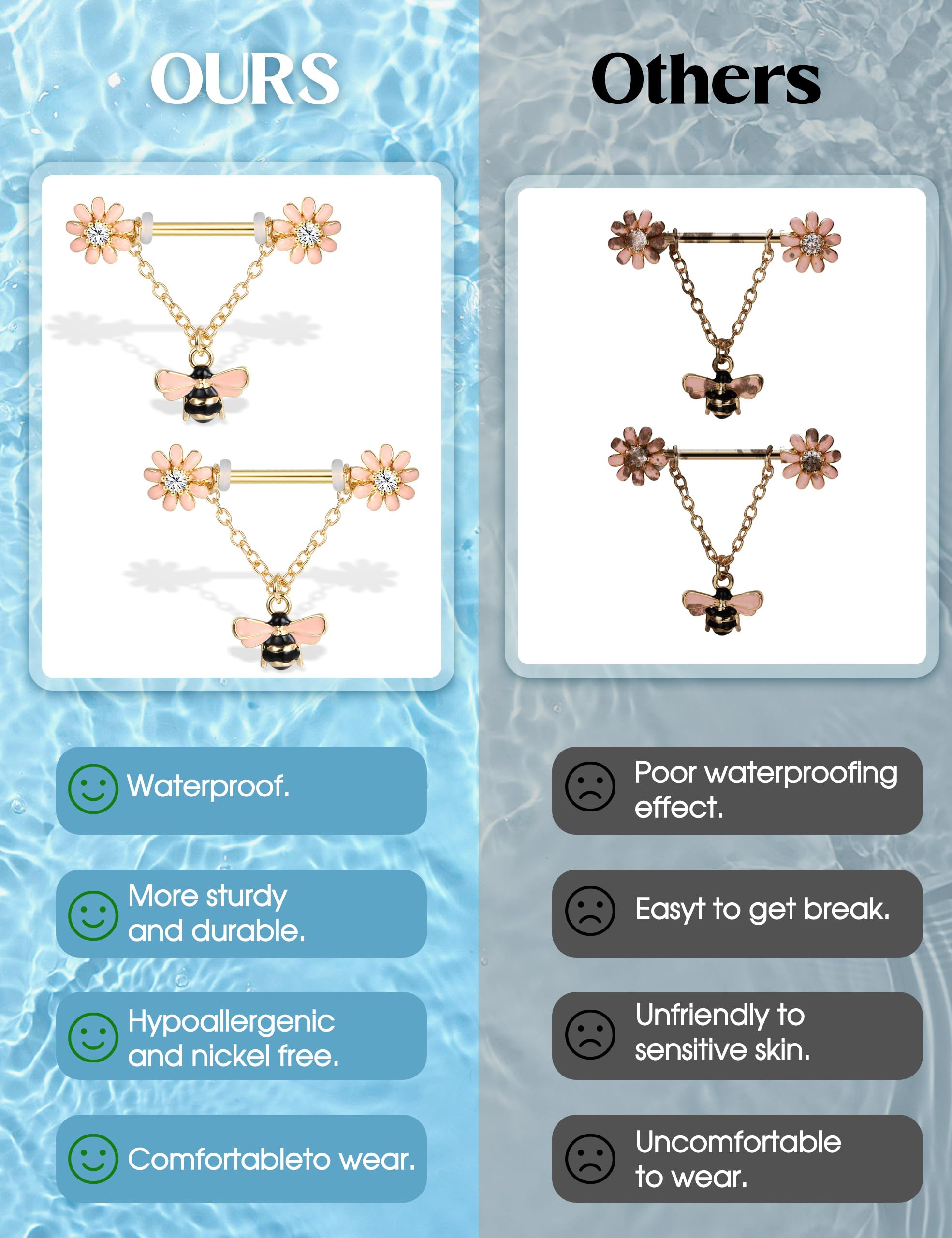 Nipple Rings Set: You will get 6 pairs nipple rings in one order with different design. Including flower with bee nipple ring, triangle nipple ring, flower nipple ring, ball nipple ring and butterfly nipple ring with shiny Cubic Zirconia. Multiple choices for you, satisfy your various needs, beautiful and exquisite, give you a different feeling