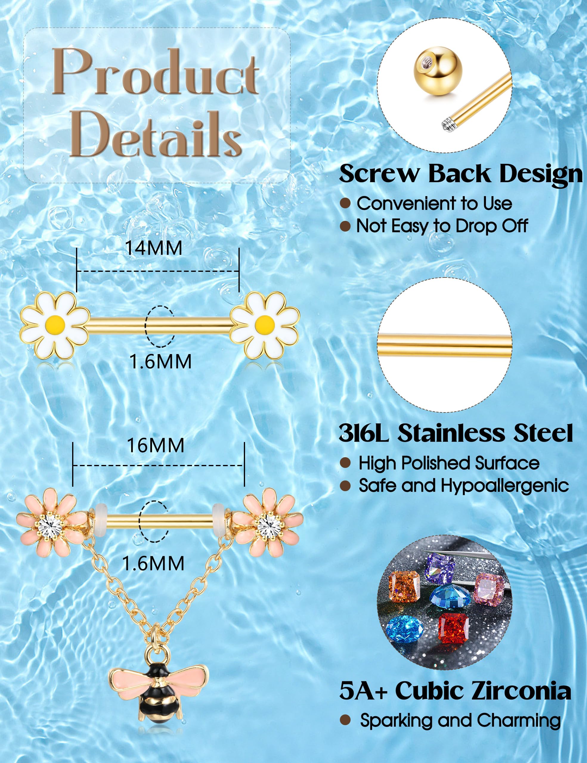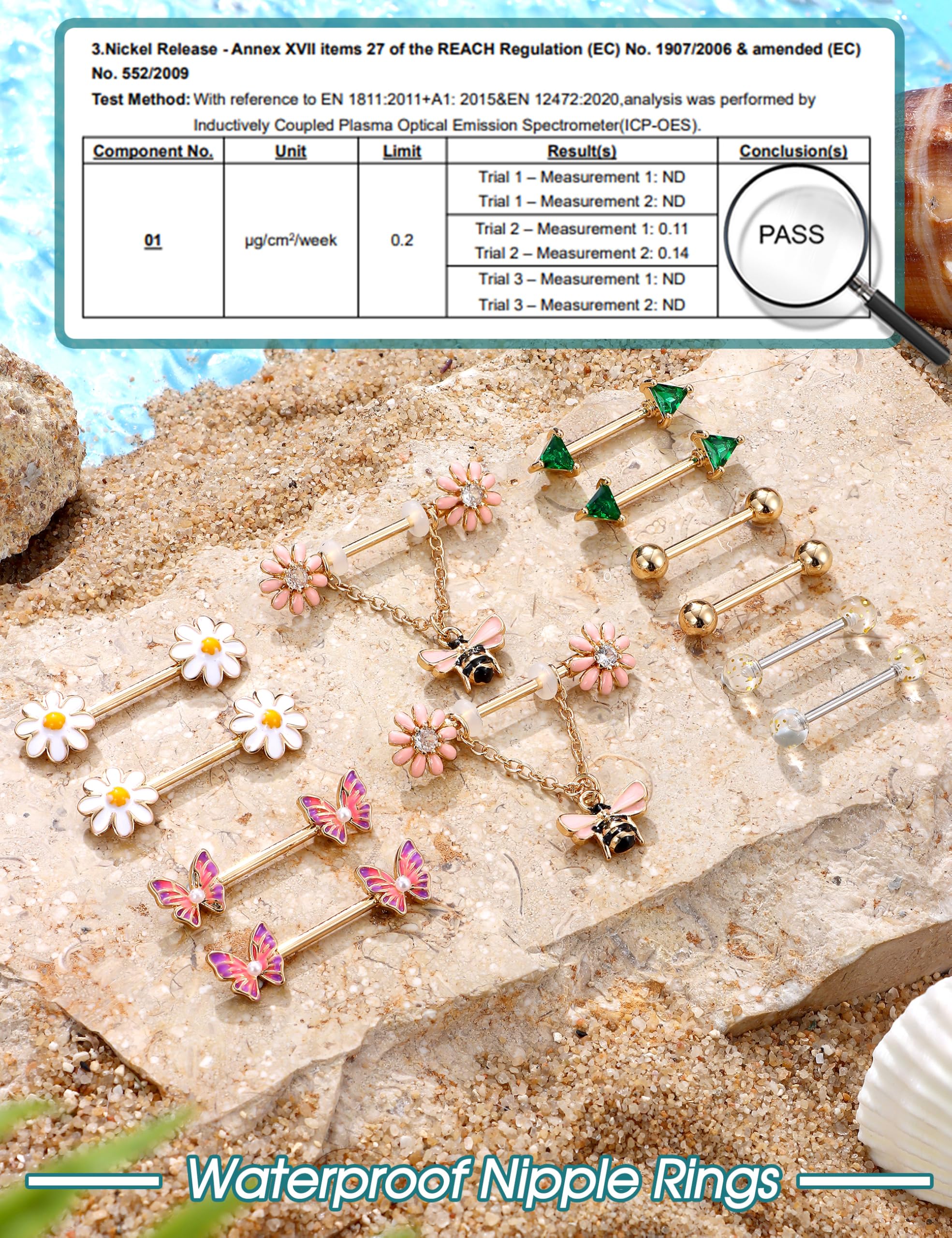 Trustworthy Material: The 14G nipple rings for women made of high-quality 316L stainless steel, free of lead and nickel, lightweight and durable, non-erosion, no rust and non-fading. Inlaid dazzling AAA+CZ, reliable zircon, not easy to fall off, superb gold plating process, delicate, shiny and attractive. Comfortable to wear and you can use safely