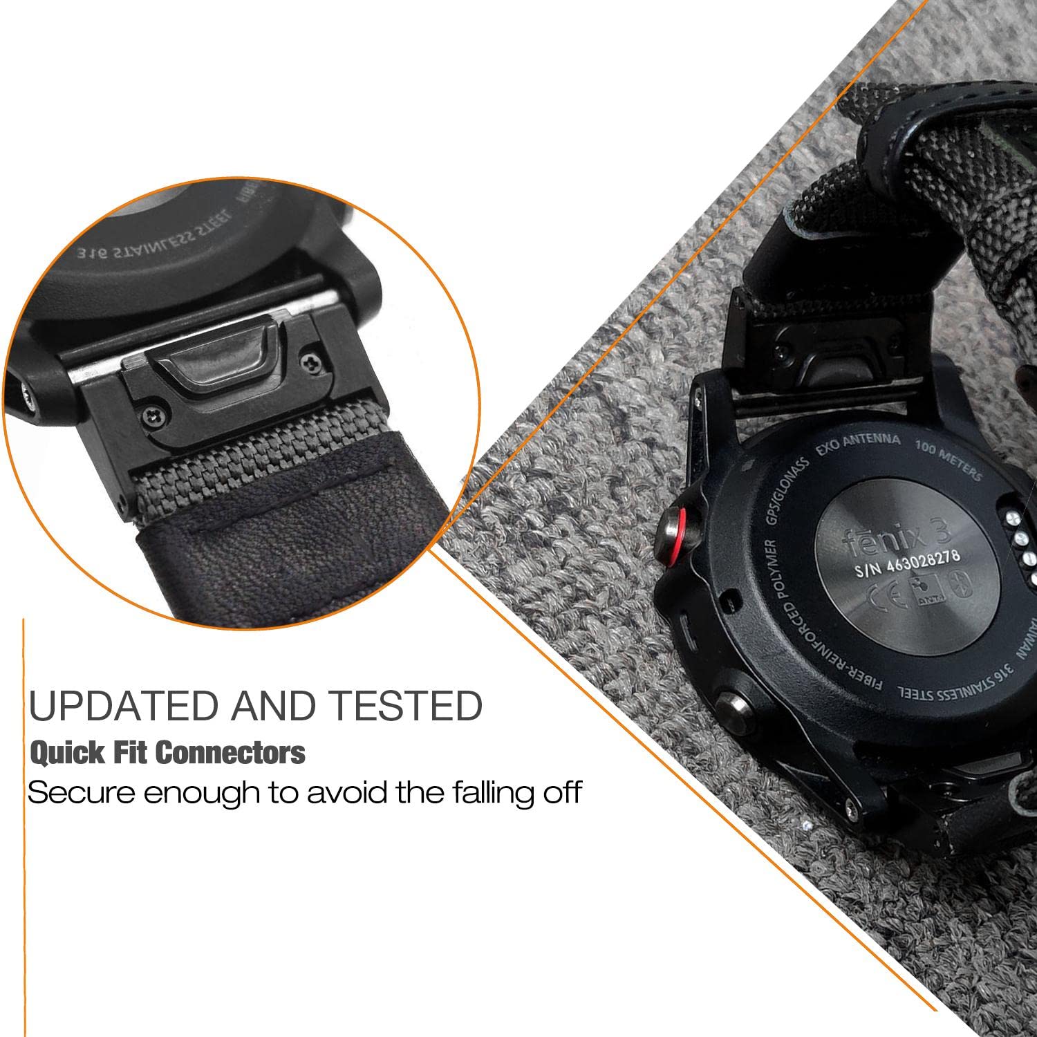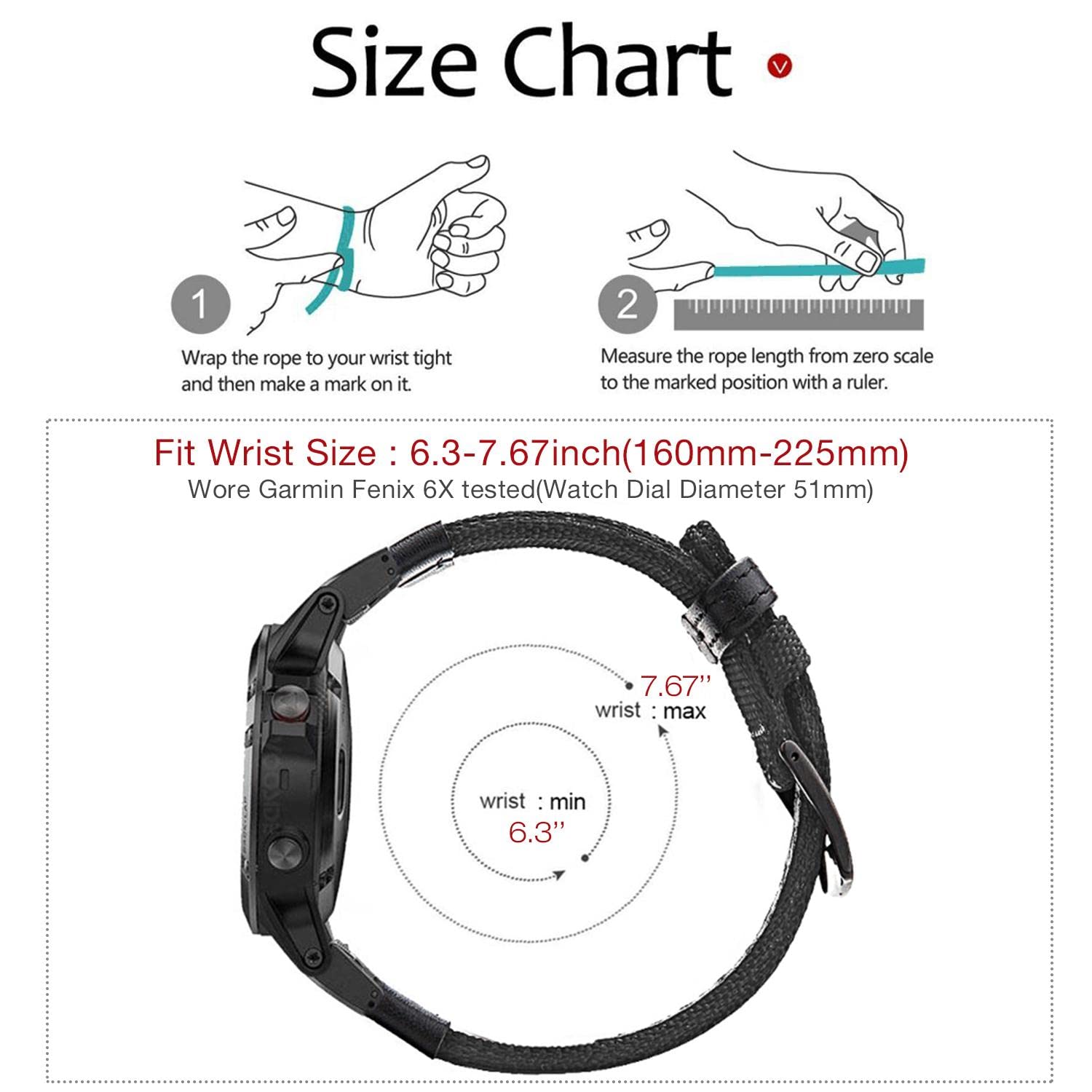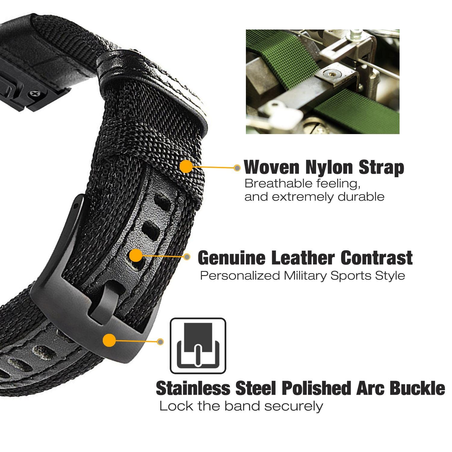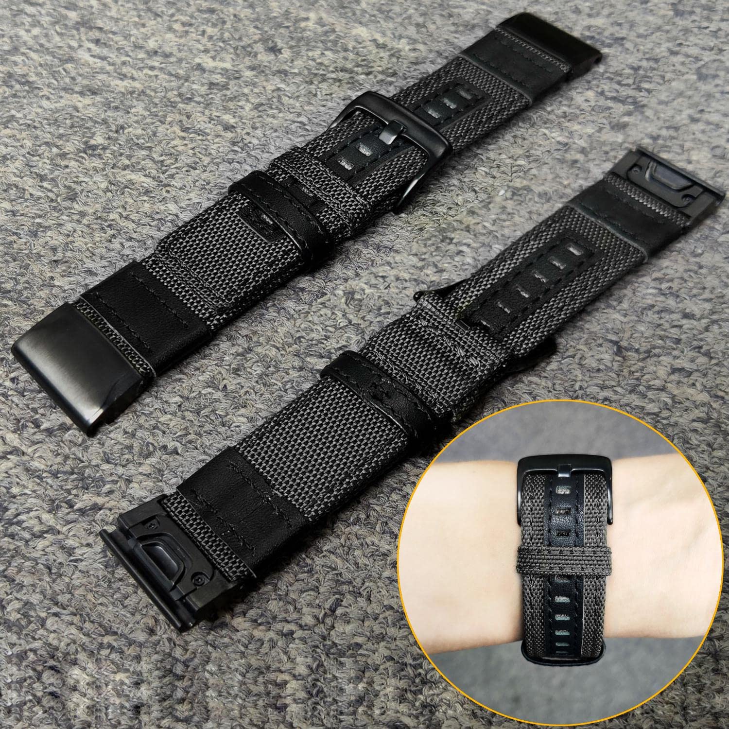 Description Notice: -- Watch Band only, Smart Watch not included. -- NOT fit 20mm Fenix 5S, Fenix 6S, Fenix 7S or 22mm Fenix 5, Fenix 6, Fenix 7. Please check the BACK your watch,it clear show the final model if you don't know your model. Feature: -- 26mm quick release fit -- Updated and tested quick release fit connectors, Secure enough to avoid the falling off. -- Military Sports Style design, give a whole new look of your smart watch -- Made of woven nylon, steady and comfortable -- Fit wrist size 6.3 -7.67inch(160mm-225mm) Compatibile with Garmin Smartwatch Version: -- Tactix 8 51mm -- Fenix 8 51mm -- epix Pro 51mm (NOT included epix Pro 47mm/42mm ) -- Instinct 2X / Instinct 3 50mm -- Fenix 7X Sapphire Solar / Fenix 7X Solar -- Fenix 6X / Fenix 6X Pro / Fenix 6X Sapphire / Fenix 6X Solar -- Enduro / Enduro 2 / Enduro 3 -- Fenix 5X / Fenix 5X Plus -- Fenix 3 / Fenix 3 HR -- Tactix Bravo / Tactix Charlie / Tactix Delta -- Descent Mk1 / Descent Mk2i/ Descent Mk2 -- Quatix 3 -- D2 Delta PX/ D2 Charlie What's in Package: 1 x 26mm quick release fit nylon watch band(NOT included smartwatch)