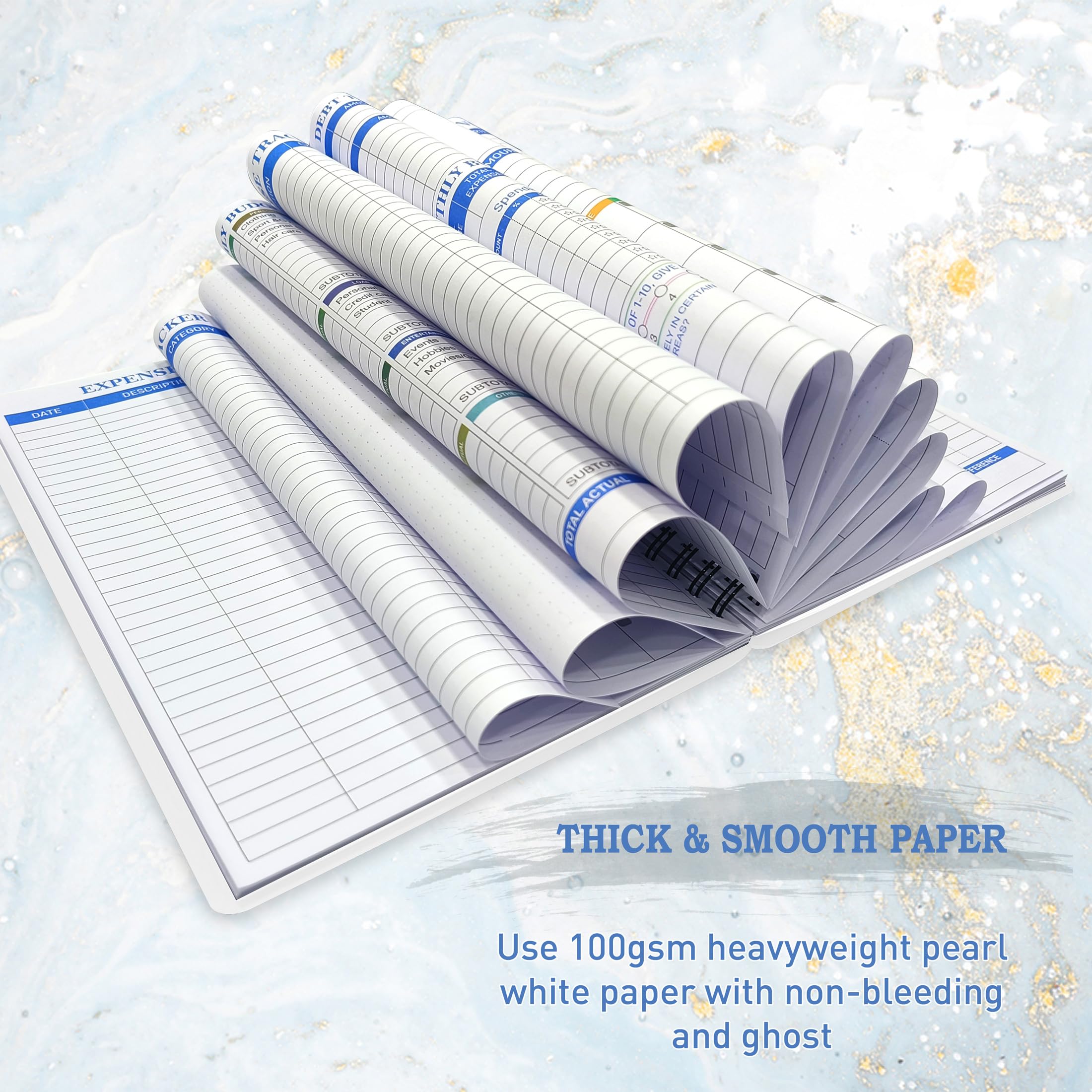 PREMIUM QUALITY - Our budget planner is made with high-quality 100gsm paper that reduces ink leakage, fraying, and shade issues. The sturdy and flexible cover,, helps protect the pages. The metal lay-flat twin-wire binding ensures durability and longevity.