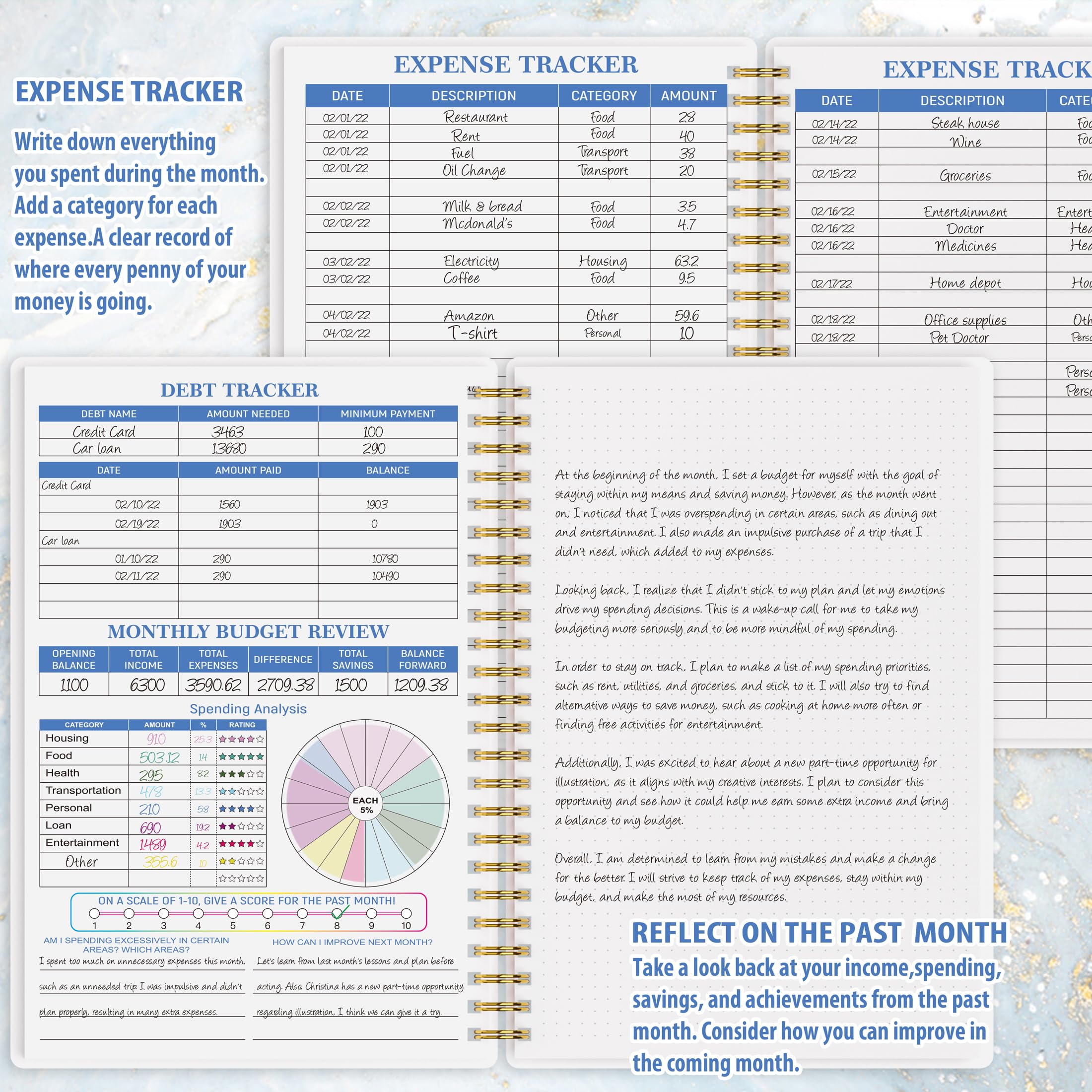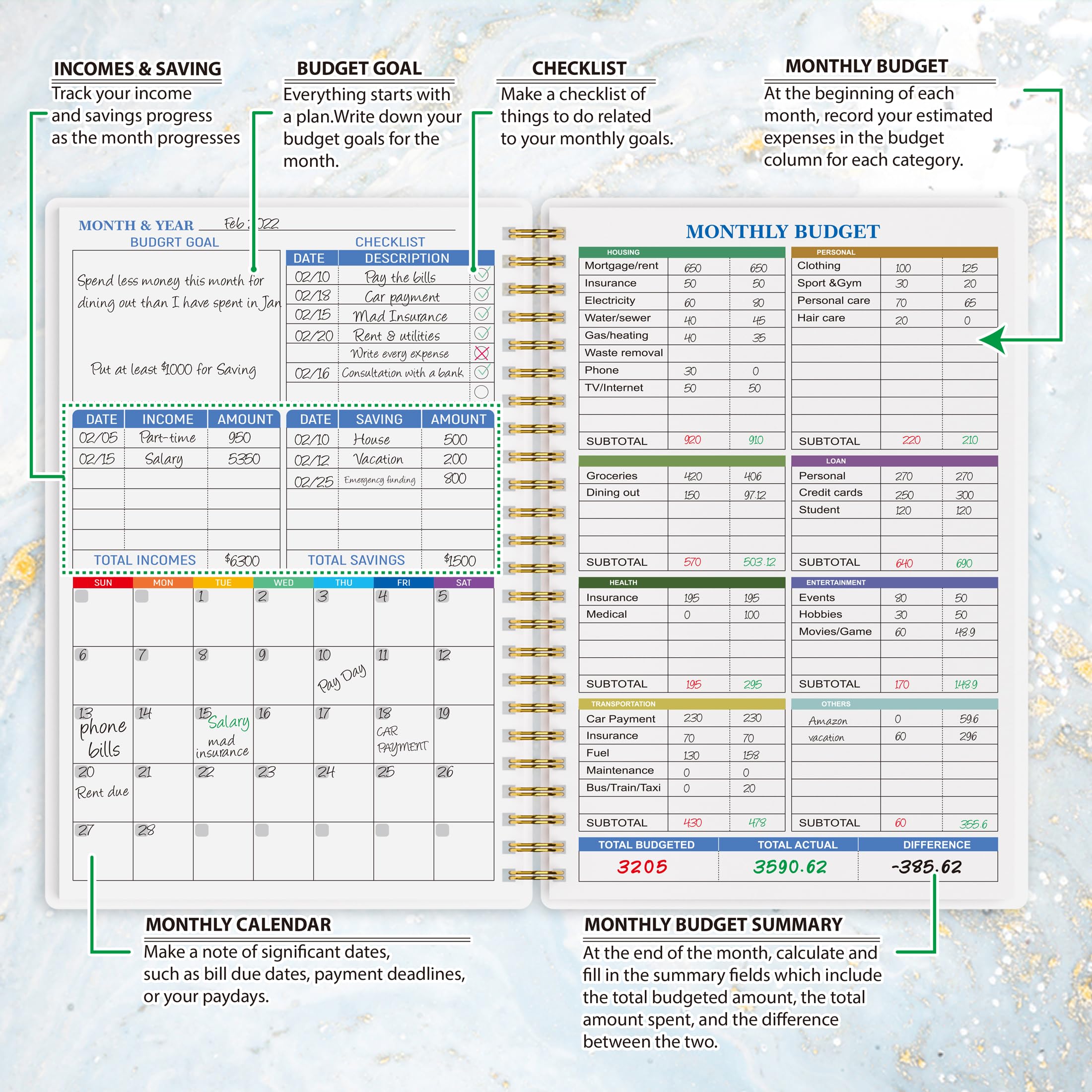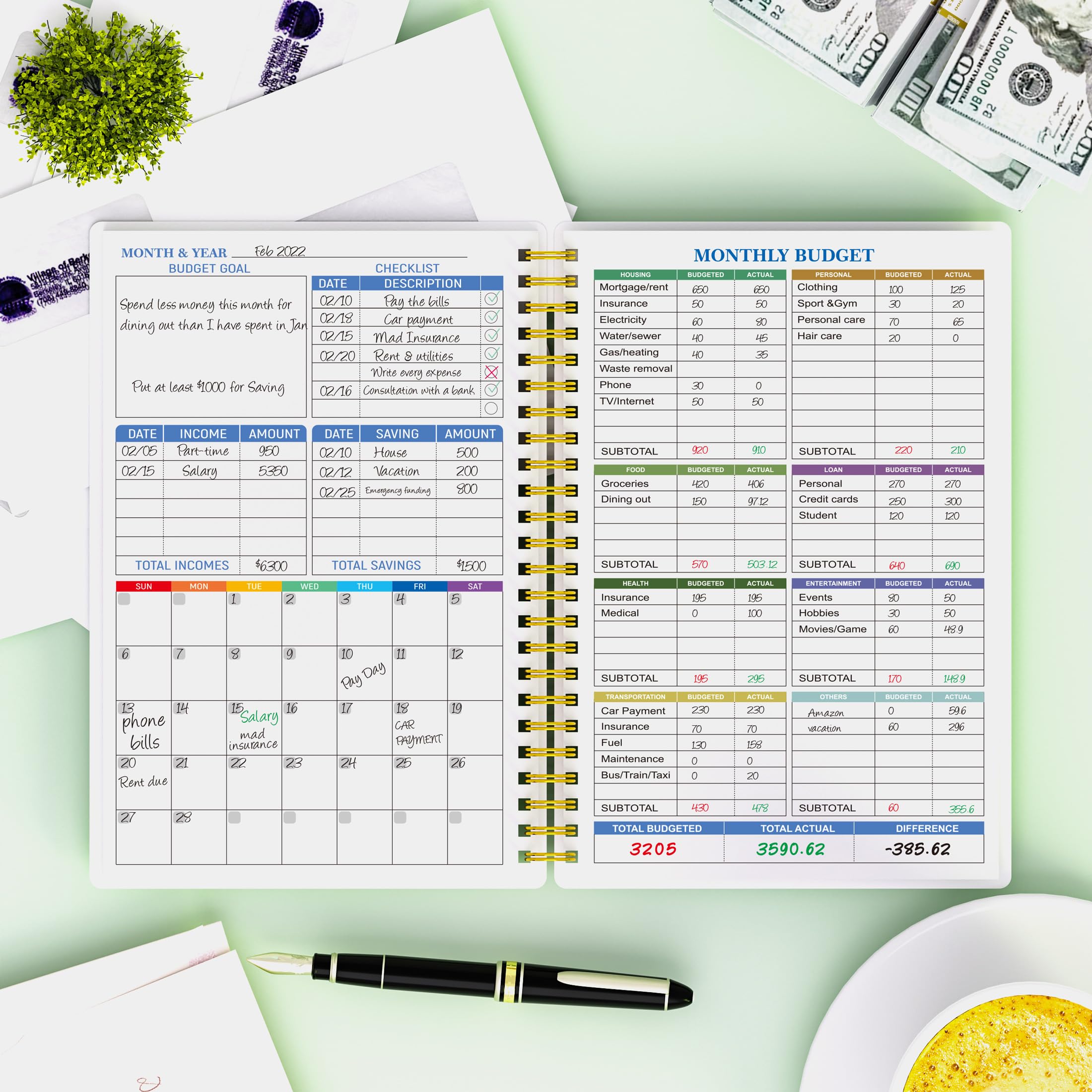 ORGANIZED MONTHLY GOALS & BUDGETS - Our 12-month budget planner helps you set monthly goals, budgets, reviews, and develop good monetary habits, strategies, and action plans. Write down monthly financial goals, put reminders of bills and payments on the calendar, plan your monthly budget in each category, track daily expenses, and review the monthly budget at the end of the month.