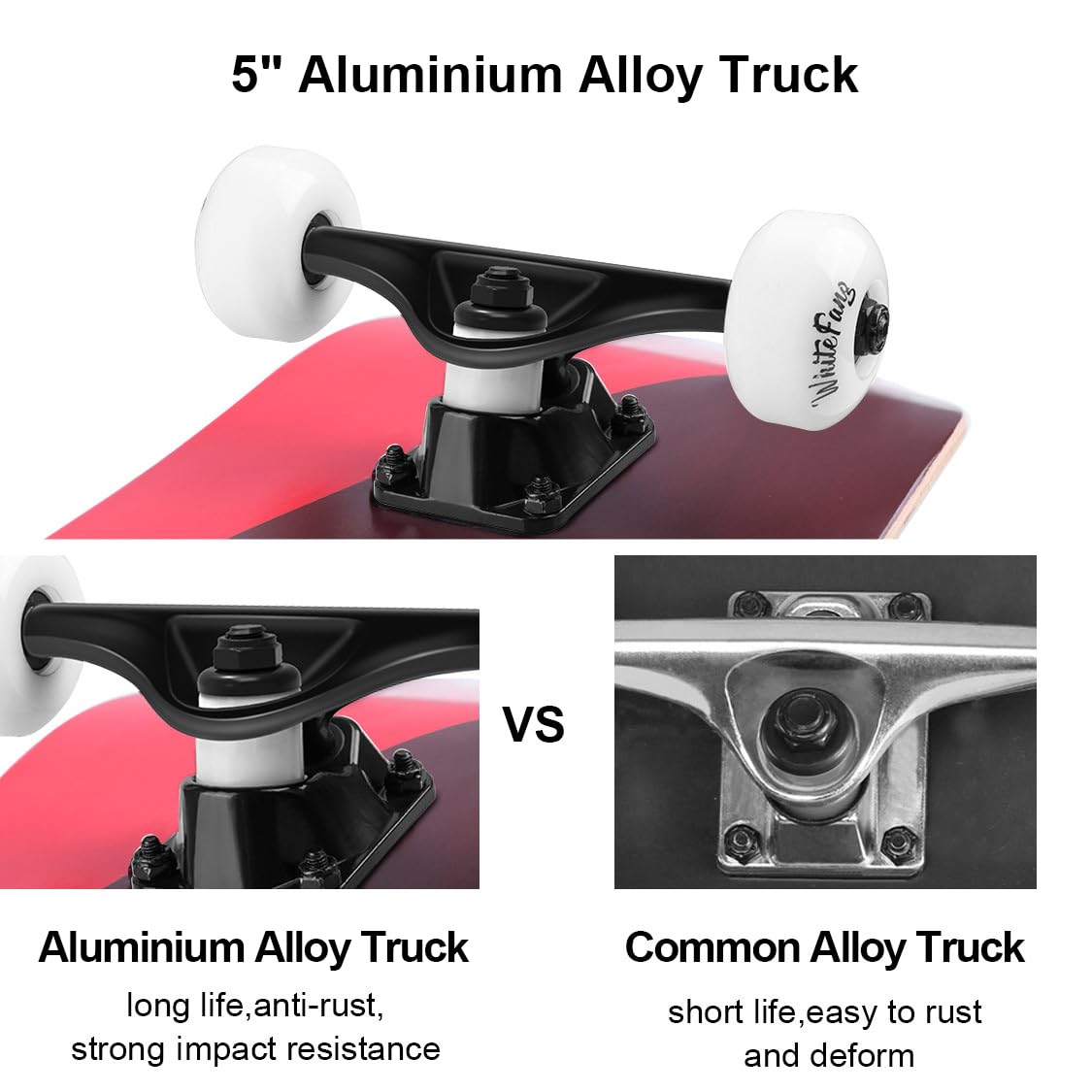 ๐น No Assembly Required: You'll receive a complete skateboard comes with 5" tough magnalium alloy truck which helps save your time and hassle of assembling. Ready to play out of the box!