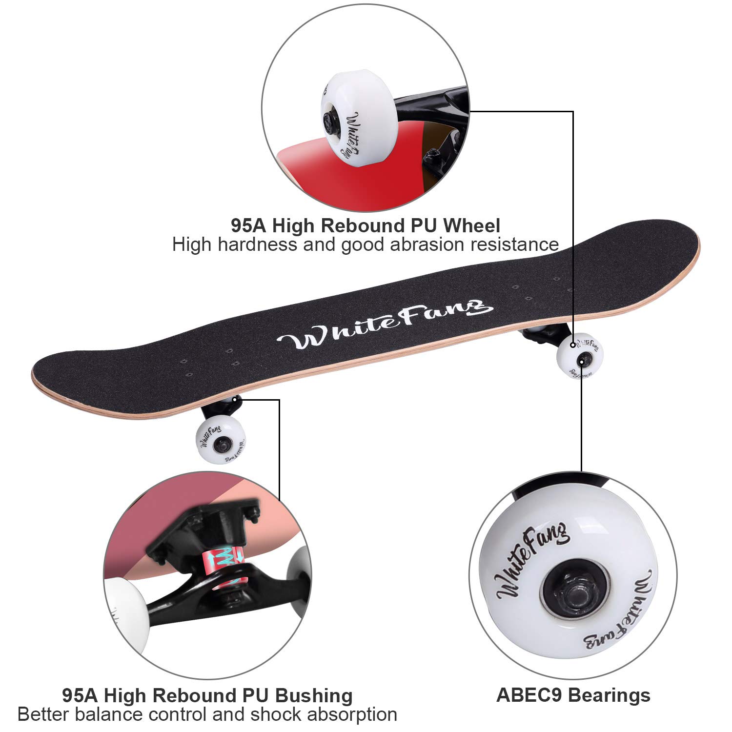๐น Durable & Sturdy: 31.75" longร7.88" wide full size double kick concave design with 7 layers hard Canadian maple deck, withstand the impact of skateboarding and learning new tricks. The max load is up to 220 lbs, durable and sturdy.
