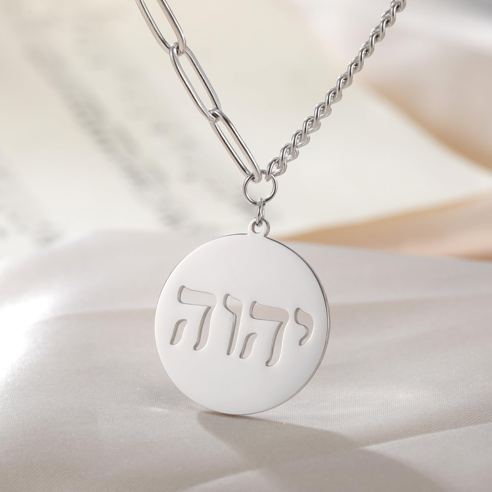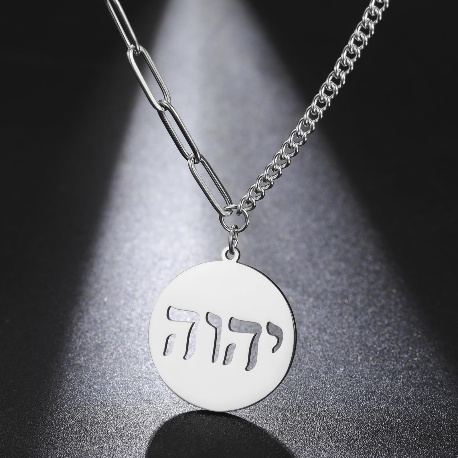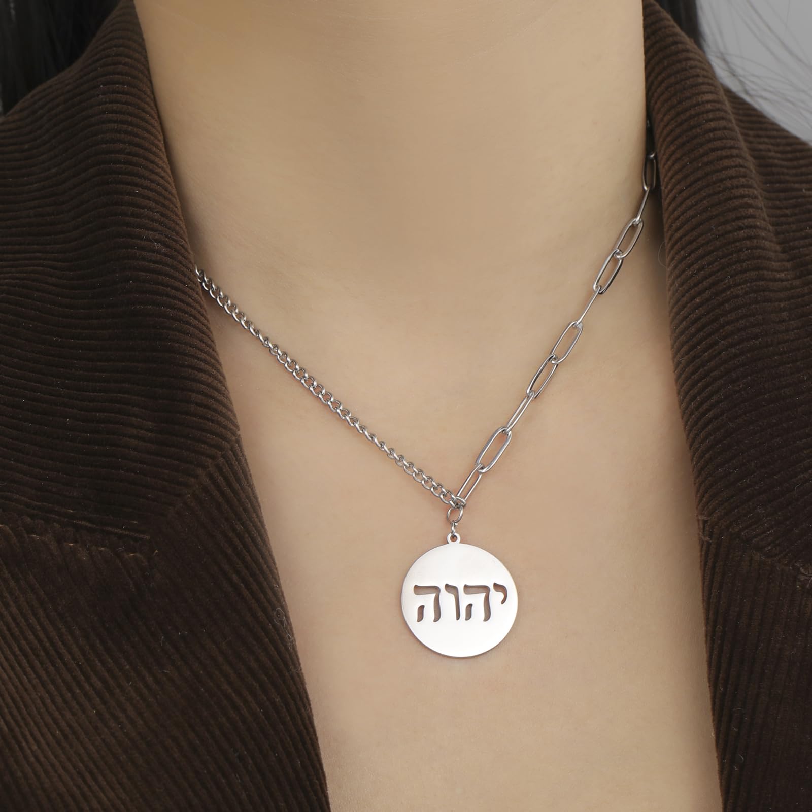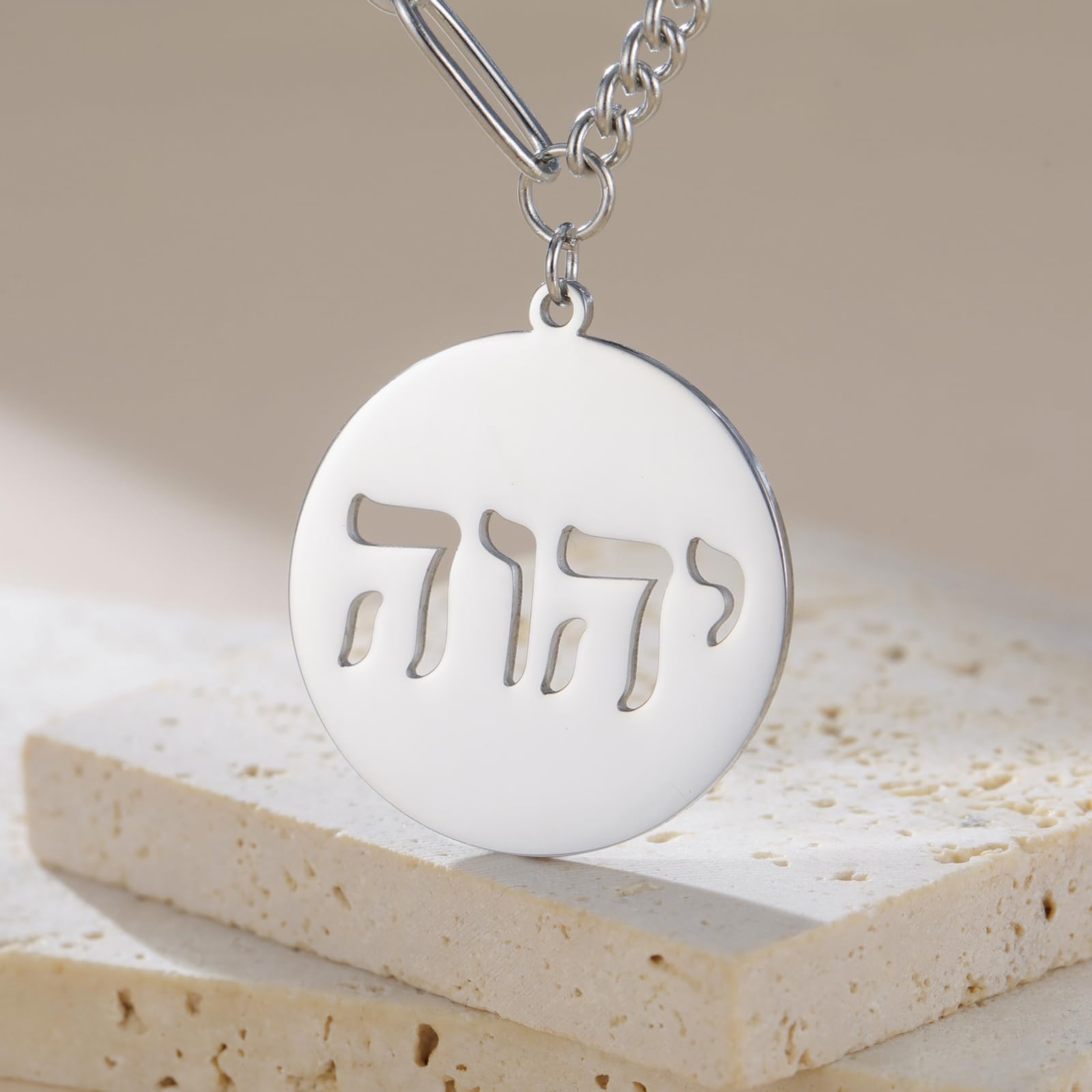 Unique Design: Hebrew necklace adorned with יהוה , the four-letter Hebrew (transliterated as YHWH or YHVH, also referred to Tetragrammaton ), is the name of God in the Hebrew Bible of Judaism, symbol the divine God is eternal. Share your faith, beliefs or tradition by wearing this Hebrew Jehovah pendant necklace.