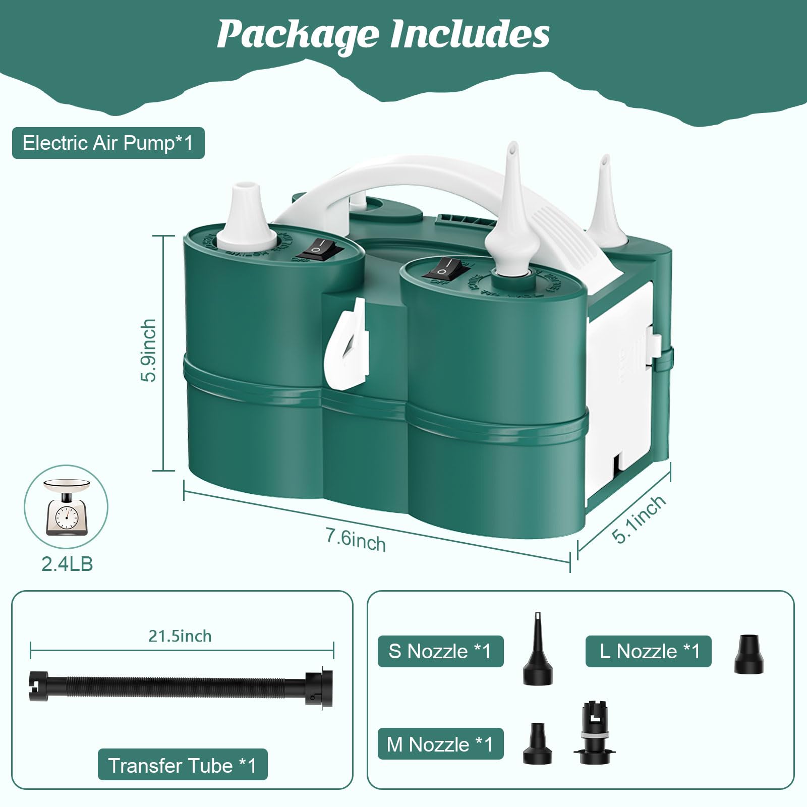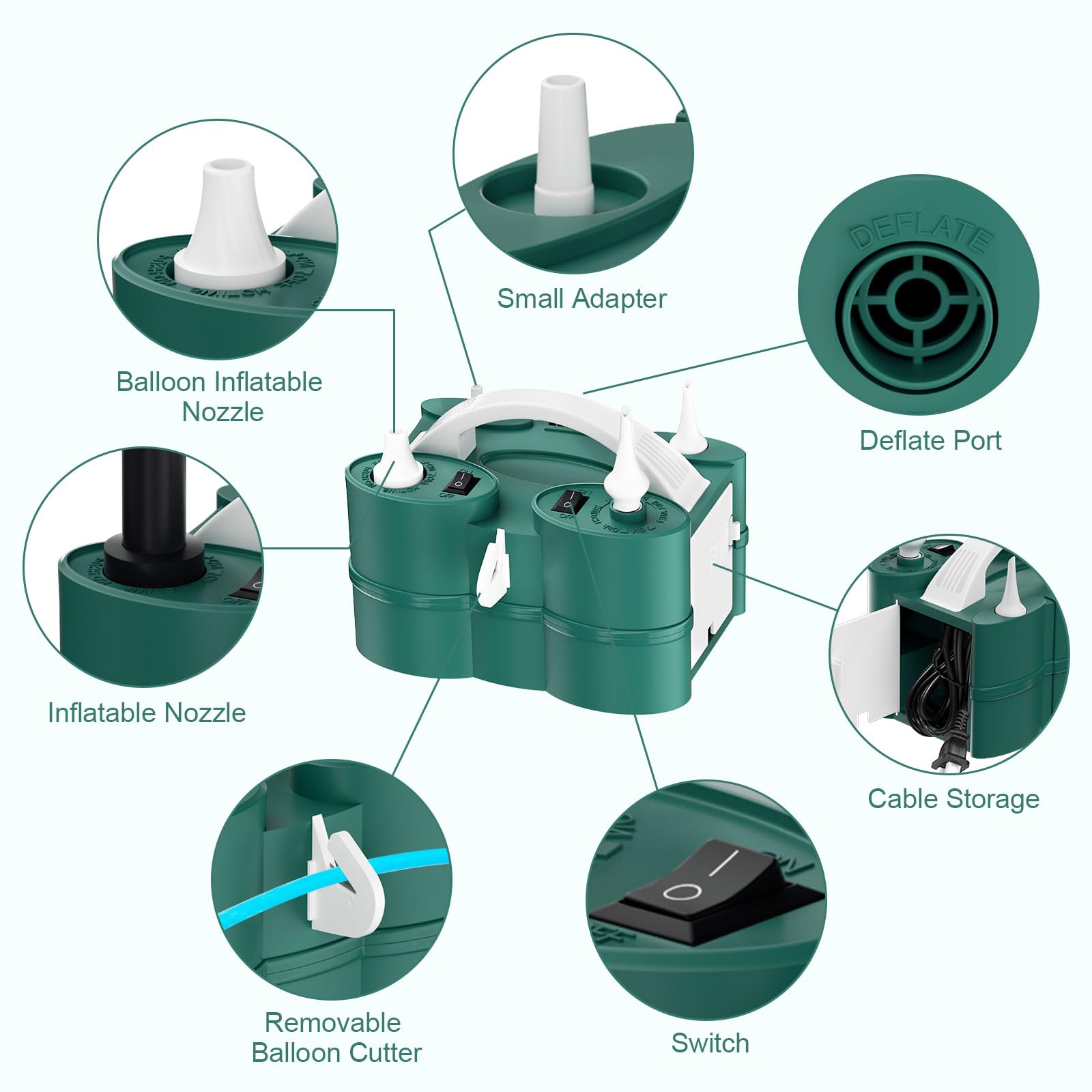 【Widely Used】5 Nozzles Available. The balloon pump can be used at birthday parties, weddings, baby shower, various commercial activities and other holiday balloon decorations, pool party ,water-fun party, which can help you save time and improve efficiency.