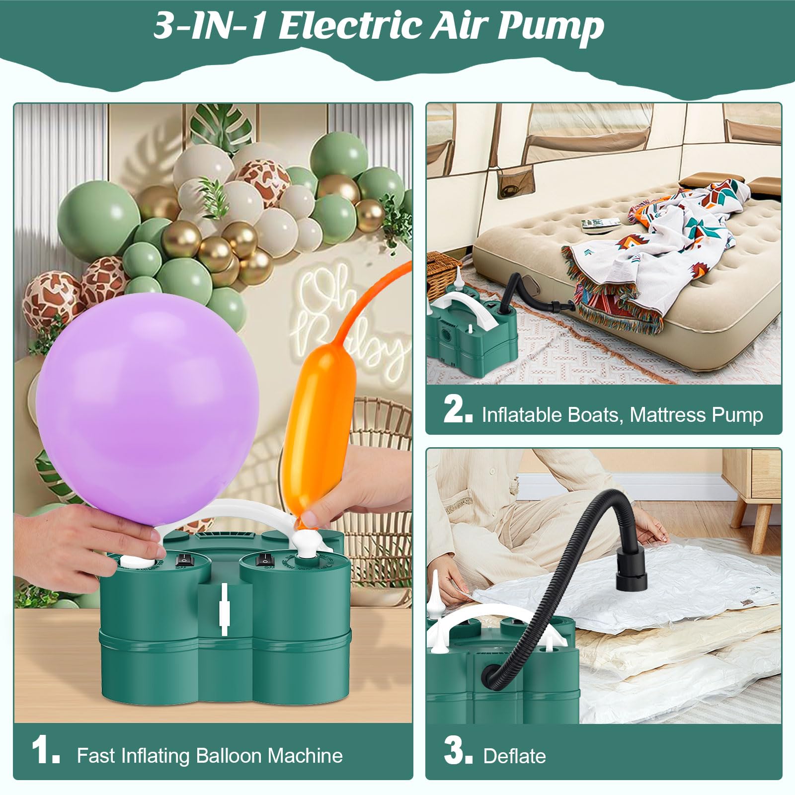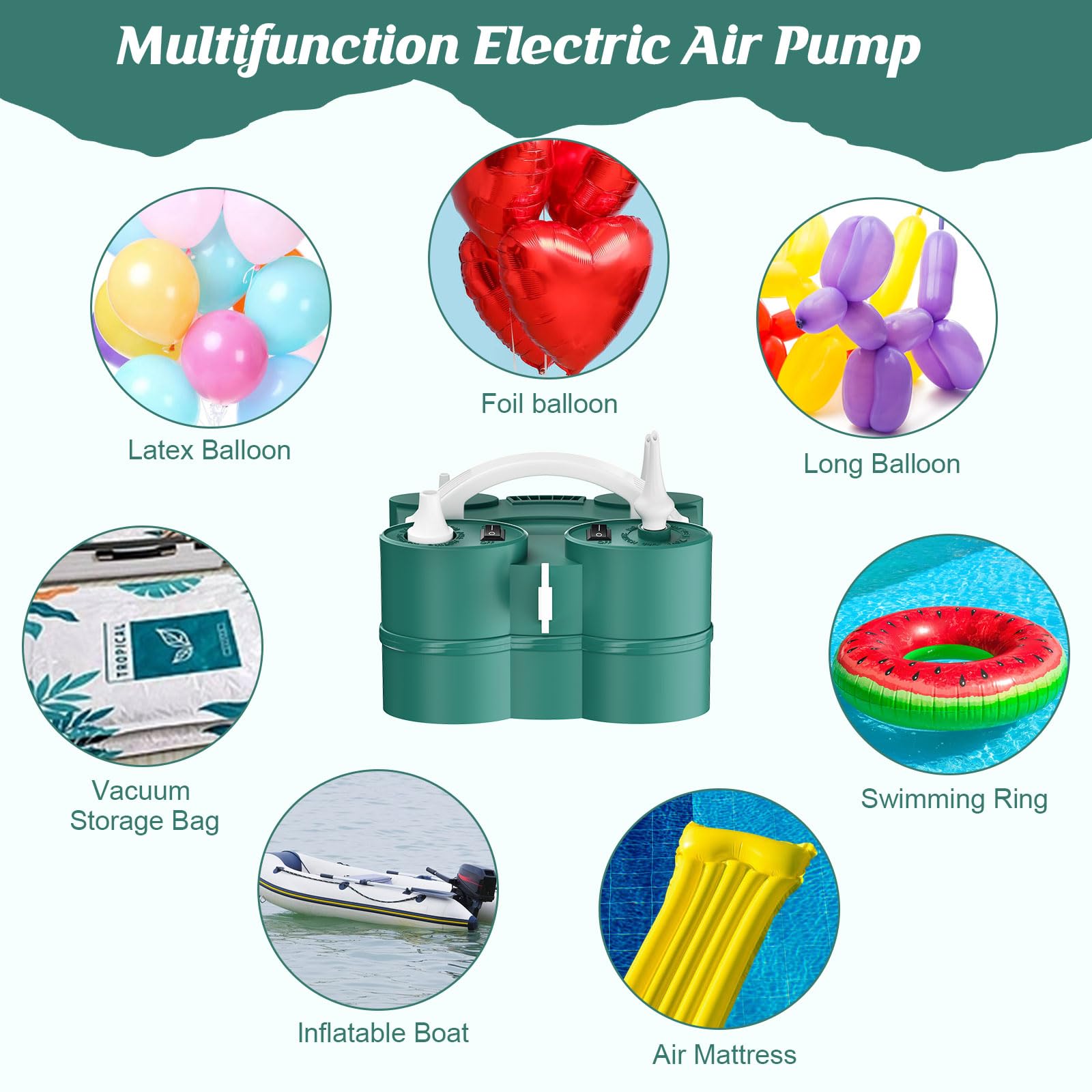 【Multi-purpose】The multi-functional balloon pump electric can blow almost all balloons, normal latex balloons, foil balloon, long magic balloon, inflatable pool, swimming ring, air mattresses bed, inflatable boat. Also can be used for vacuuming, such as vacuum bags, etc.