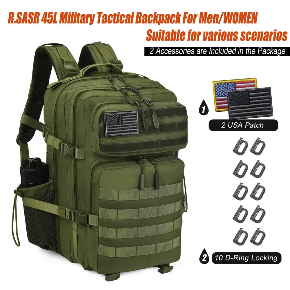 This Military Tactical Backpack is Equipped with 6 D-Rings to Make it Easy for you to Hang the Accessories of the Backpack. 1 Tactical Pouch, 1 Patch, 3 reflective Patch, Backpack Size Appro: 13inch x 20inch x 13inch Dimensions and Appropriately Sized 40L Capacity, This Pack has Room for all of Your Essential Gear.