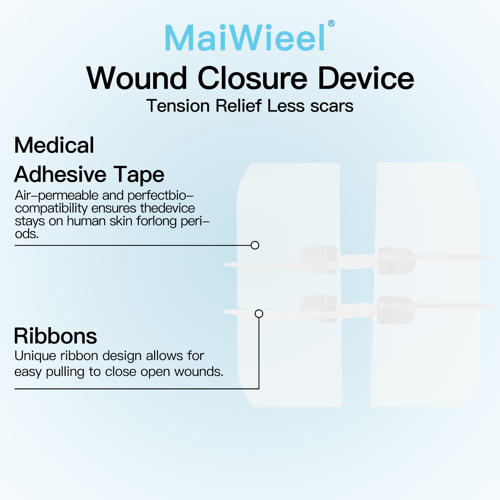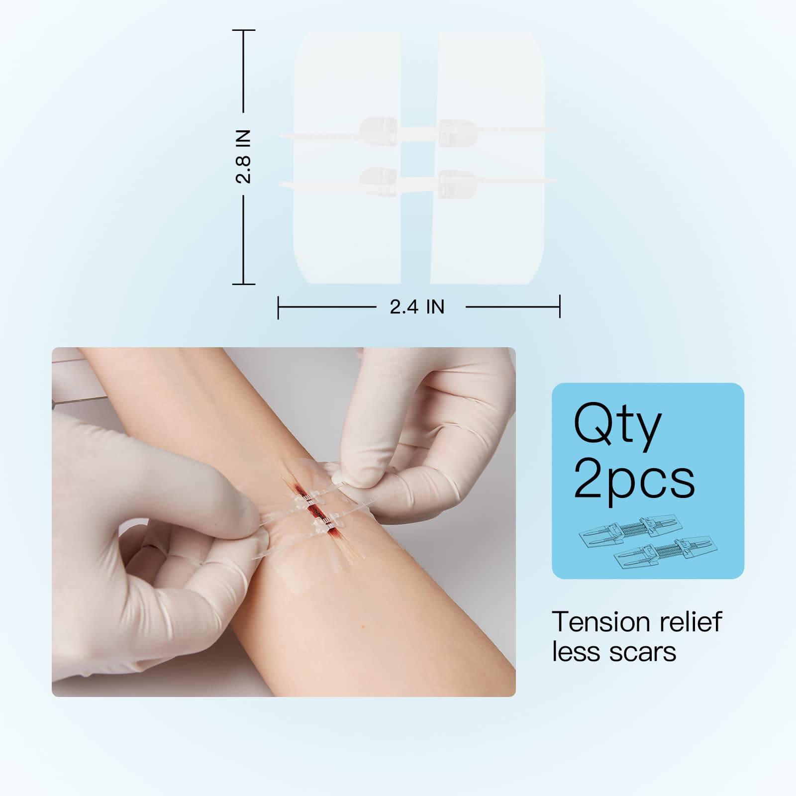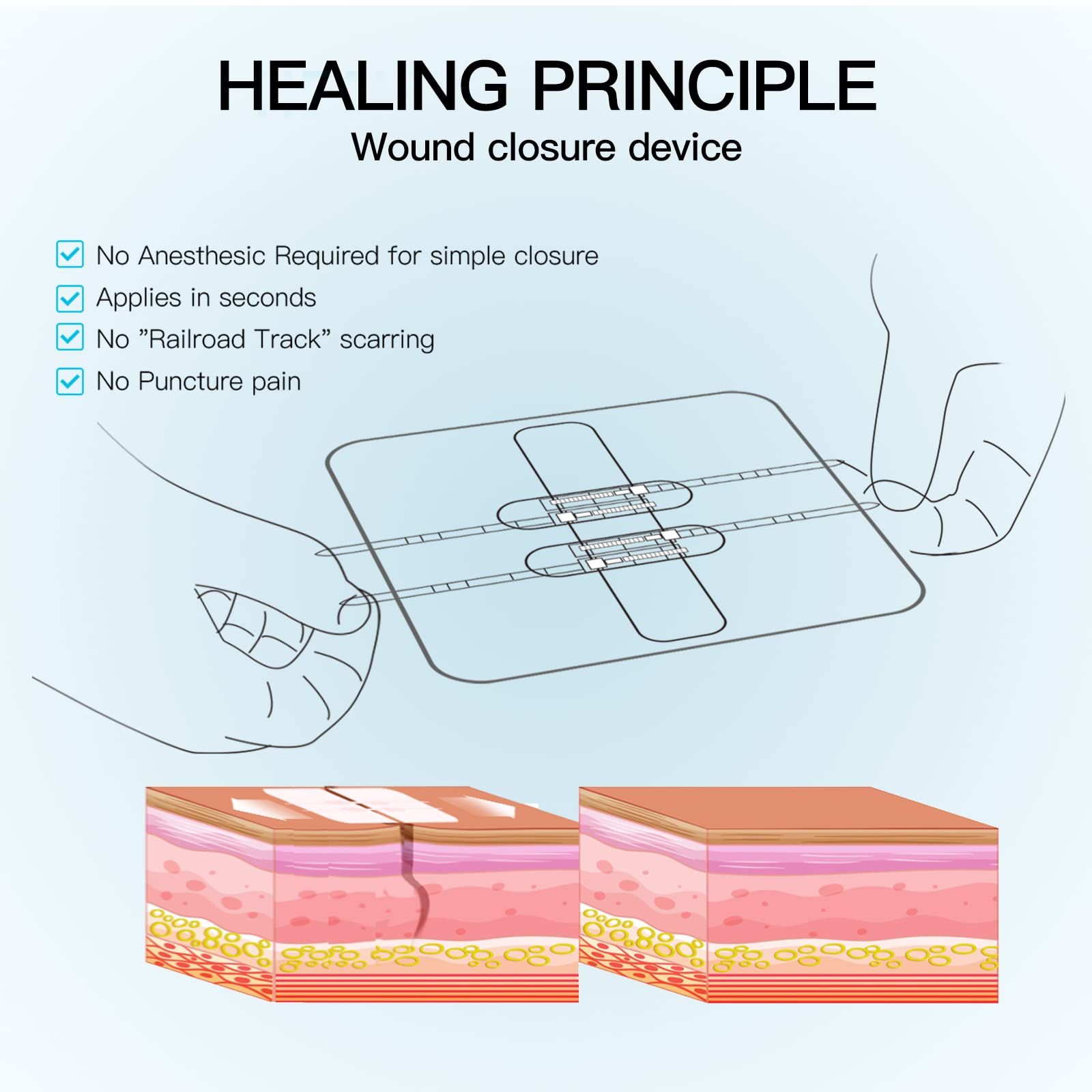 Stichless Closure:Our Wound Closure is No-stitch needed,easy&painless to use.It helps reduce secondary trauma&scarring,enhances recovery&peel-off process comfort.
