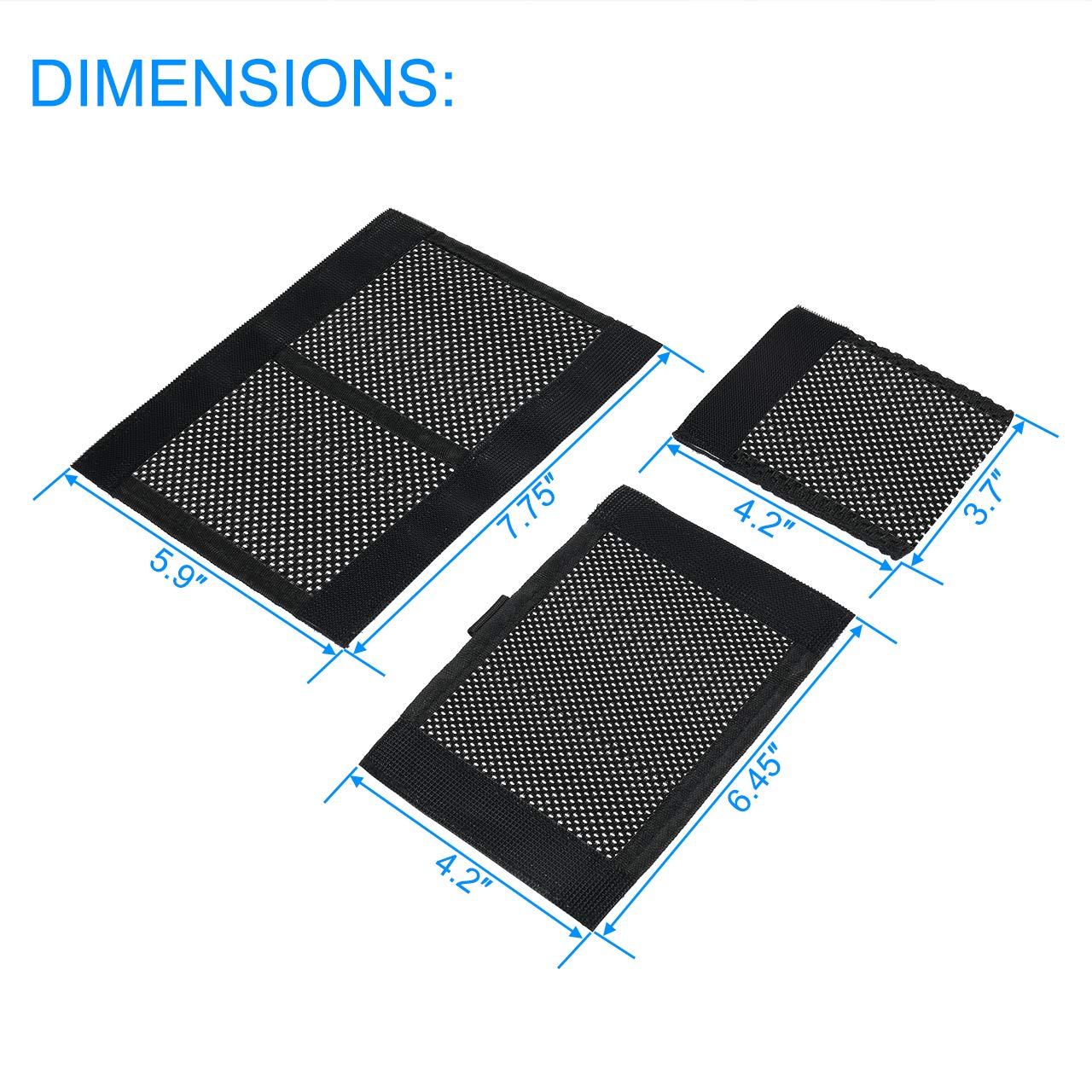 Package included: 3 pcs different size Mesh Pocket Net. Size: 7.75“x 5.9"/ 6.45“x 4.2"/ 4.2”x 3.7" inches