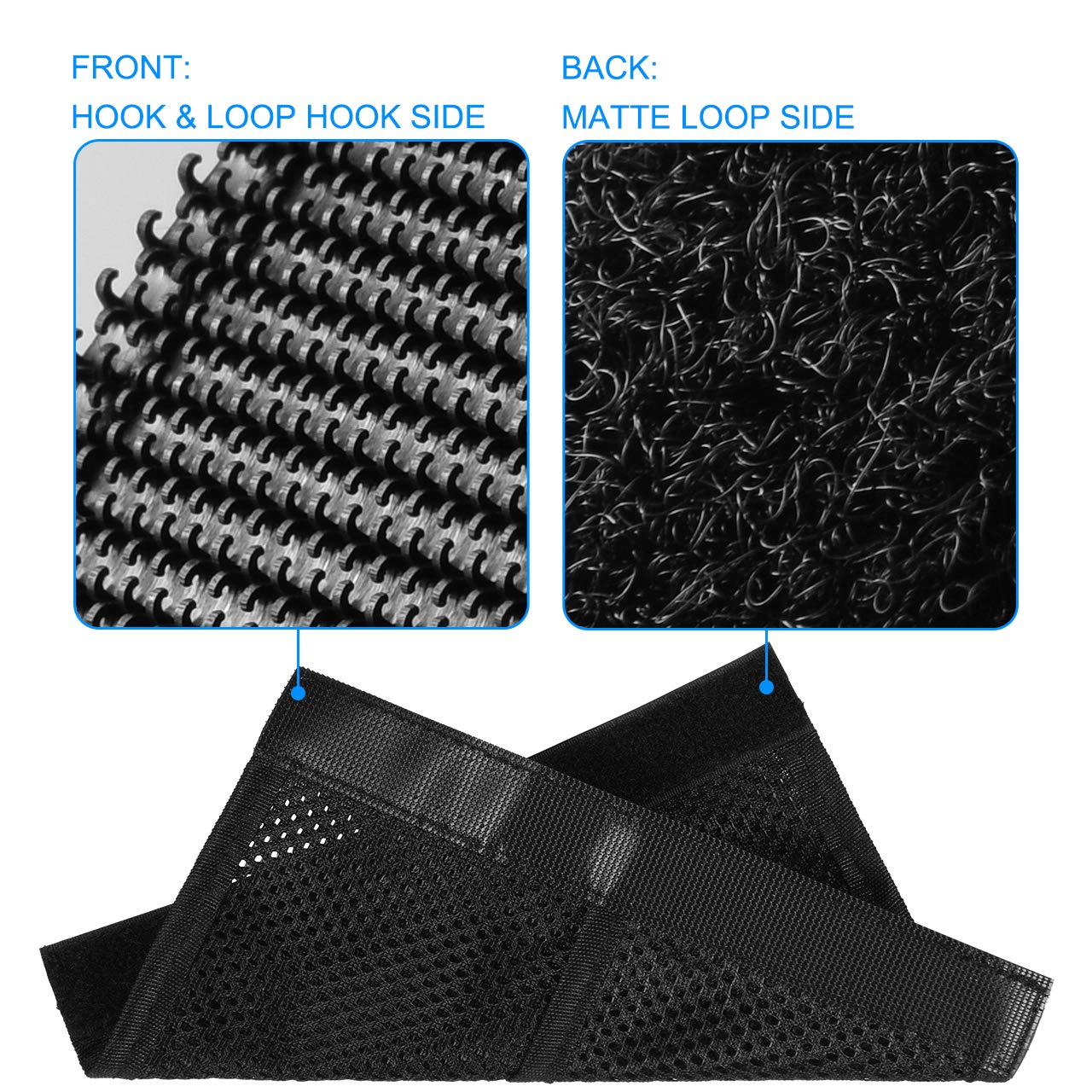 Material: Mesh Pocket Net Bag with Hook and Loop Strap; Color: Black Works great in any camera bag that uses hook and loop and insert; These mesh pocket allow you to properly keep your camera, lenses and accessories safely in place when they are not in use; Well made mesh pocket net fastener add much needed security to camera lenses and a camera body with a lens in your camera backpack. Good mix of 3 sizes to suit your needs. 3 different sizes. Each mesh pocket net has 1 end that is double sided hook and loop magic hook side and another end double sided matte loop, works great to keep lenses from bouncing around or batteries from falling out. Package included: 3 pcs different size Mesh Pocket Net Size: 7.75“x 5.9"/ 6.45“x 4.2"/ 4.2”x 3.7" inches