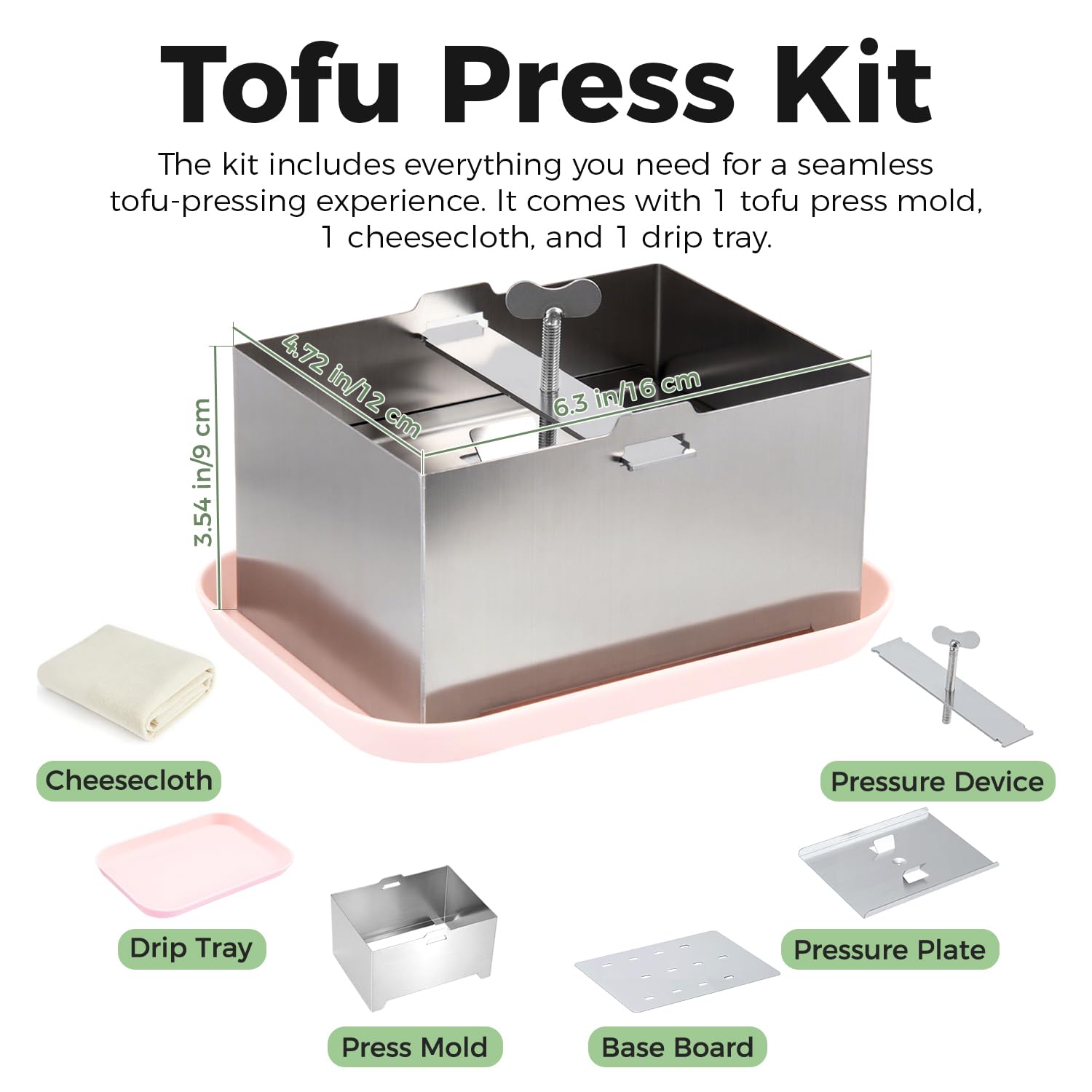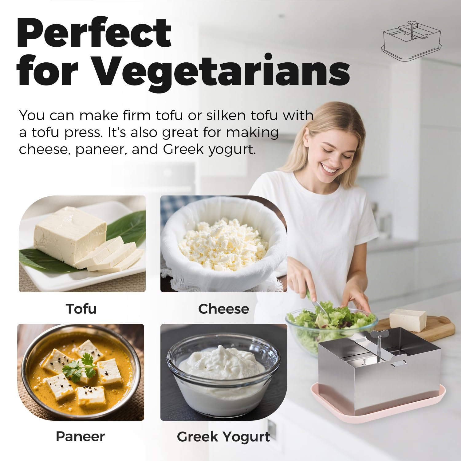 ADJUSTABLE PRESSURE FOR CUSTOMIZED FIRMNESS: By simply turning the screw rod, you can adjust the pressure to control the firmness of the tofu—whether you want firm tofu blocks or gently drained smooth tofu. It's an essential kitchen companion for vegetarians and ideal for making homemade tofu, cheese, and paneer.