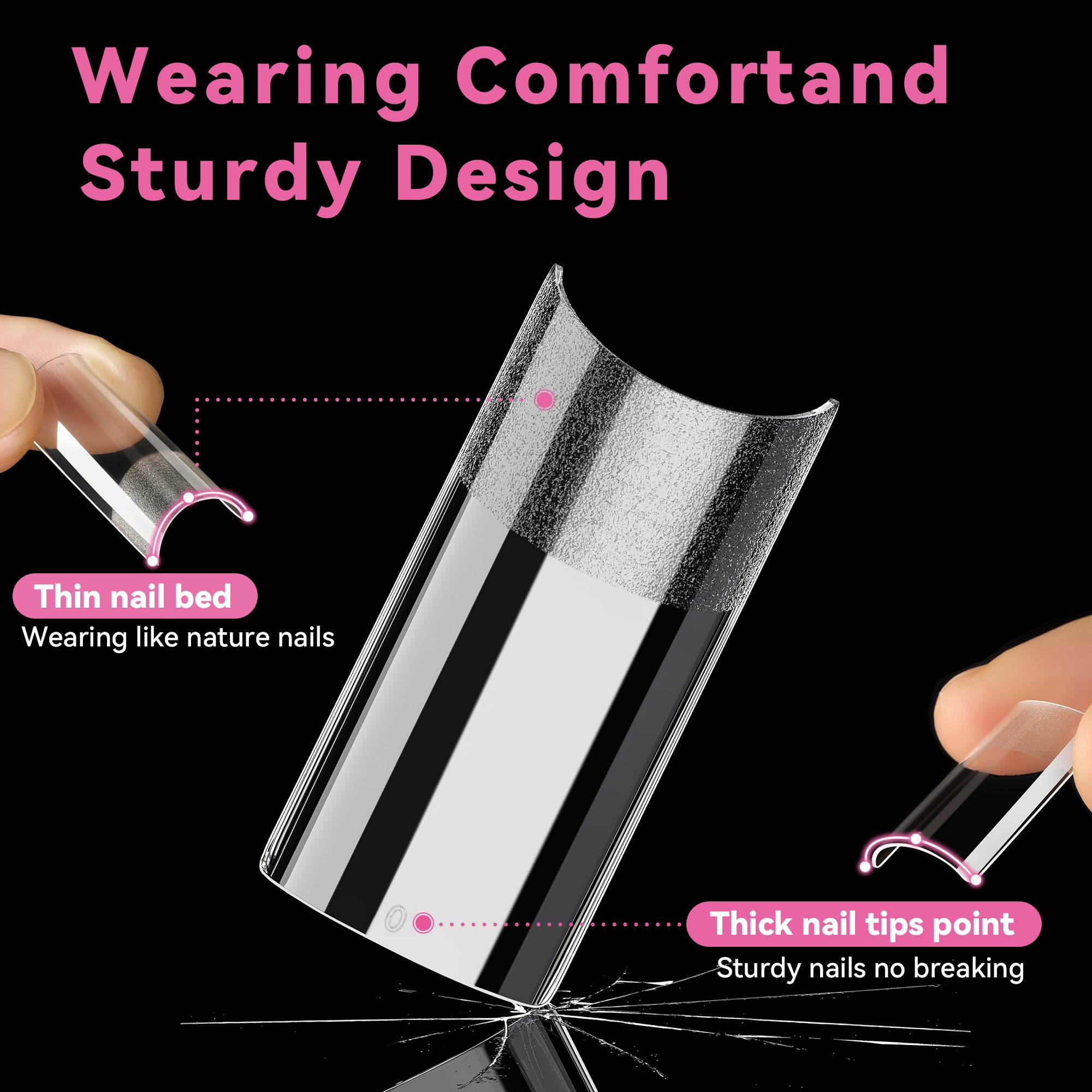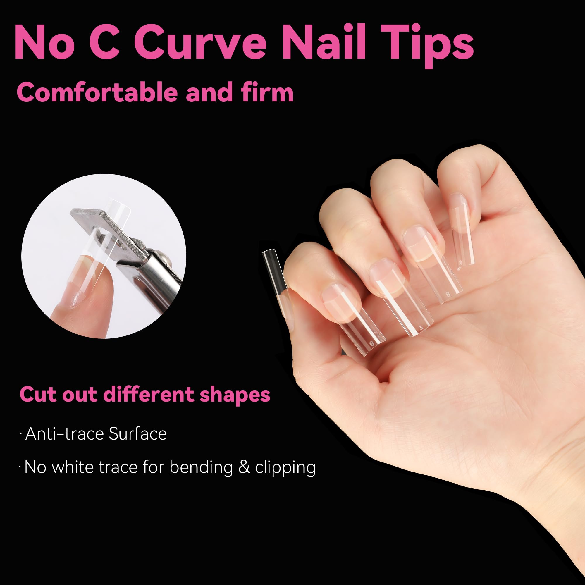 💅 Upgrade No C Curve Square Nail Tips: Half cover Clear Fake nail tips easy to shape, file flat, paint and use with gel polish, acrylic powder nail, fiberglass,dip powder nail. Can make more design!The surface of nails tips can hope the color gel well, easy to apply the gel on the tips.