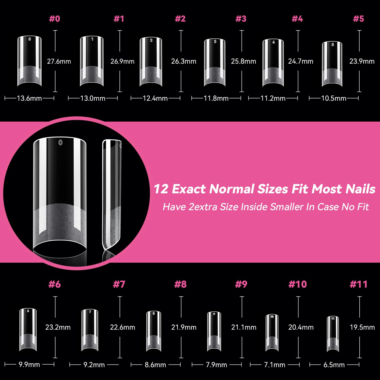 ❤️12 Sizes Nail Tips : Square Nail Tips with 12 sizes are suitable for all kinds of nail satisfying various needs. Made with perfect length and thickness. And 2 extra size can suit bigger or smaller nails, in case 10size can not fit few of your nails.