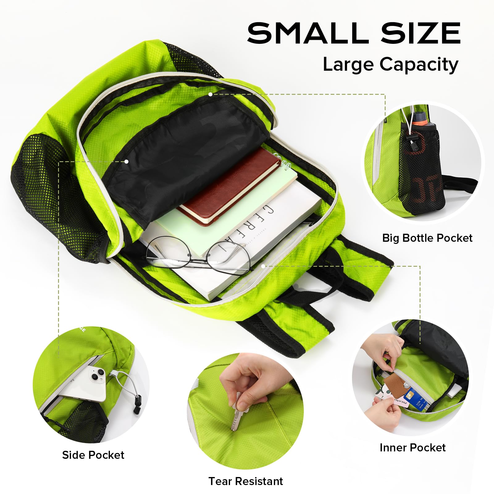 Foldable into a Pouch and Compact : When not in use, hikers can easily fold this collapsible small back pack into its inner pocket, as small as a palm, which can be easily packed into your bag or suitcase, providing additional storage space to carry extra gear or souvenirs