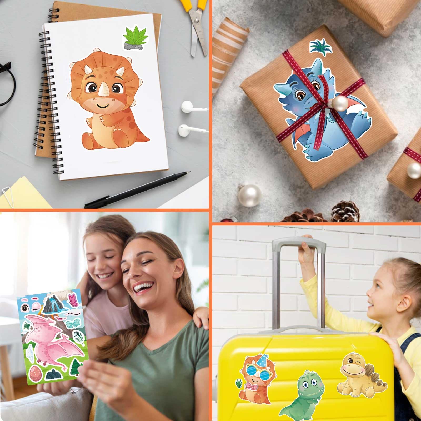 🦖【Premium Dinosaur Toy for Kids】Make a face dinosaur stickers are colorful printed,easy to stick and remove, the surface is covered with film, very thick, good glossiness,which have great waterproof performance, colorfast and safe with no odd smell, no tearing. And all items are safe for kids'use.
