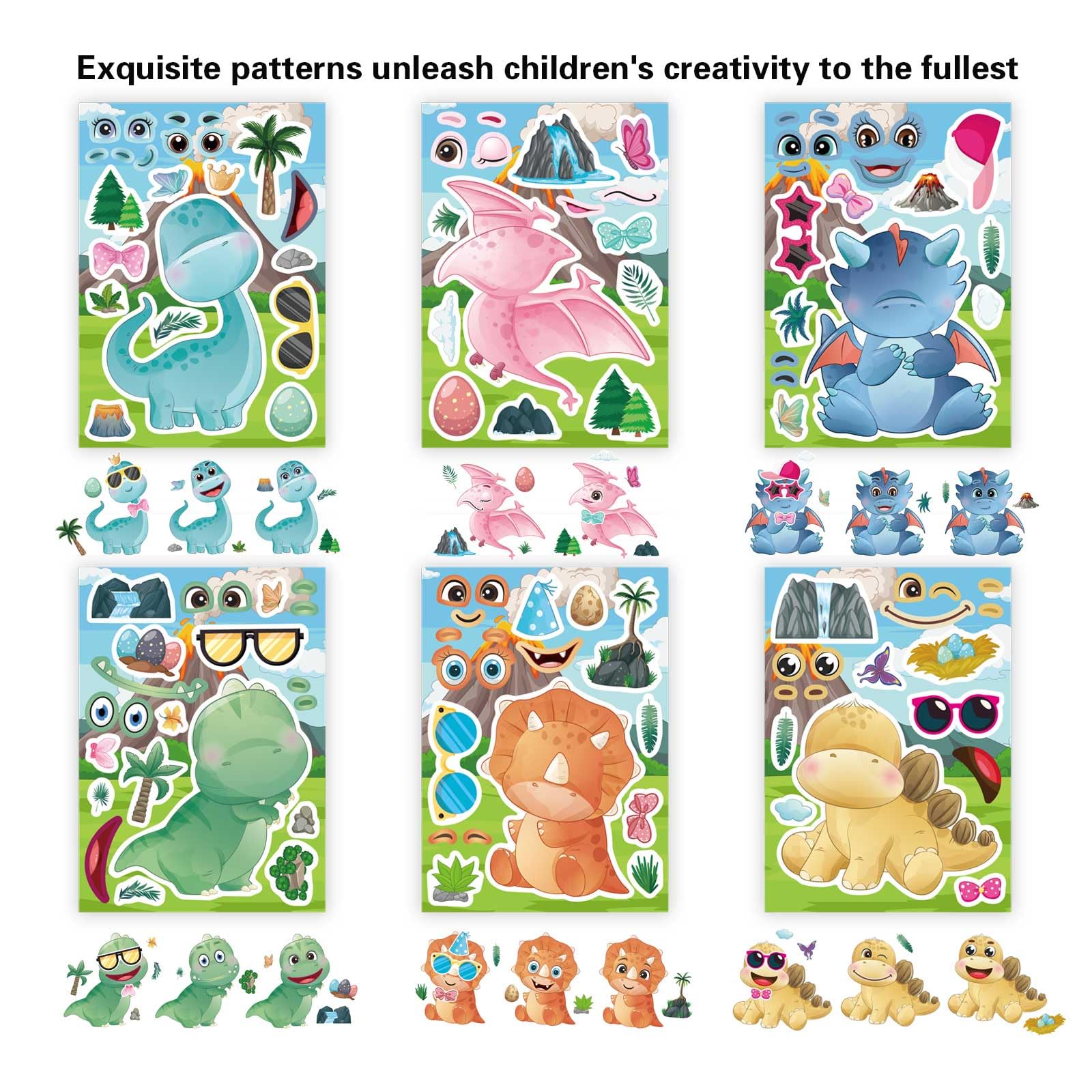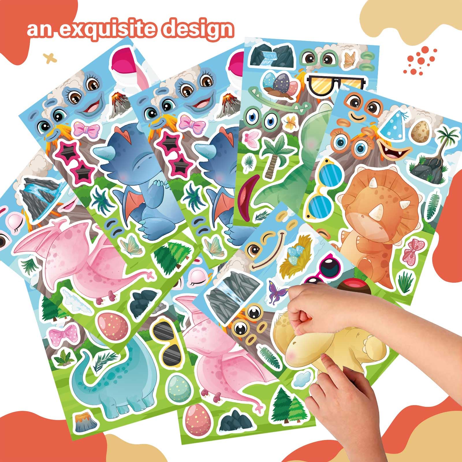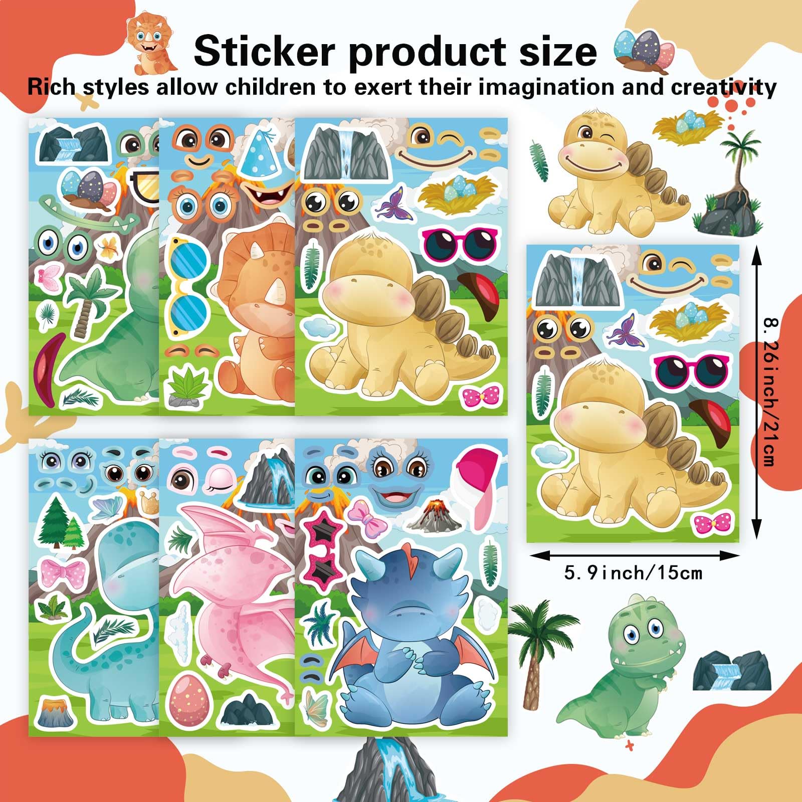 🦖【Dinosaur Party Favor Supplies】DIY dino craft stickers for kids to make their own dino. It stimulates children's interest through fun dino theme face stickers, enhances their creativity、imagination and hands on ability.