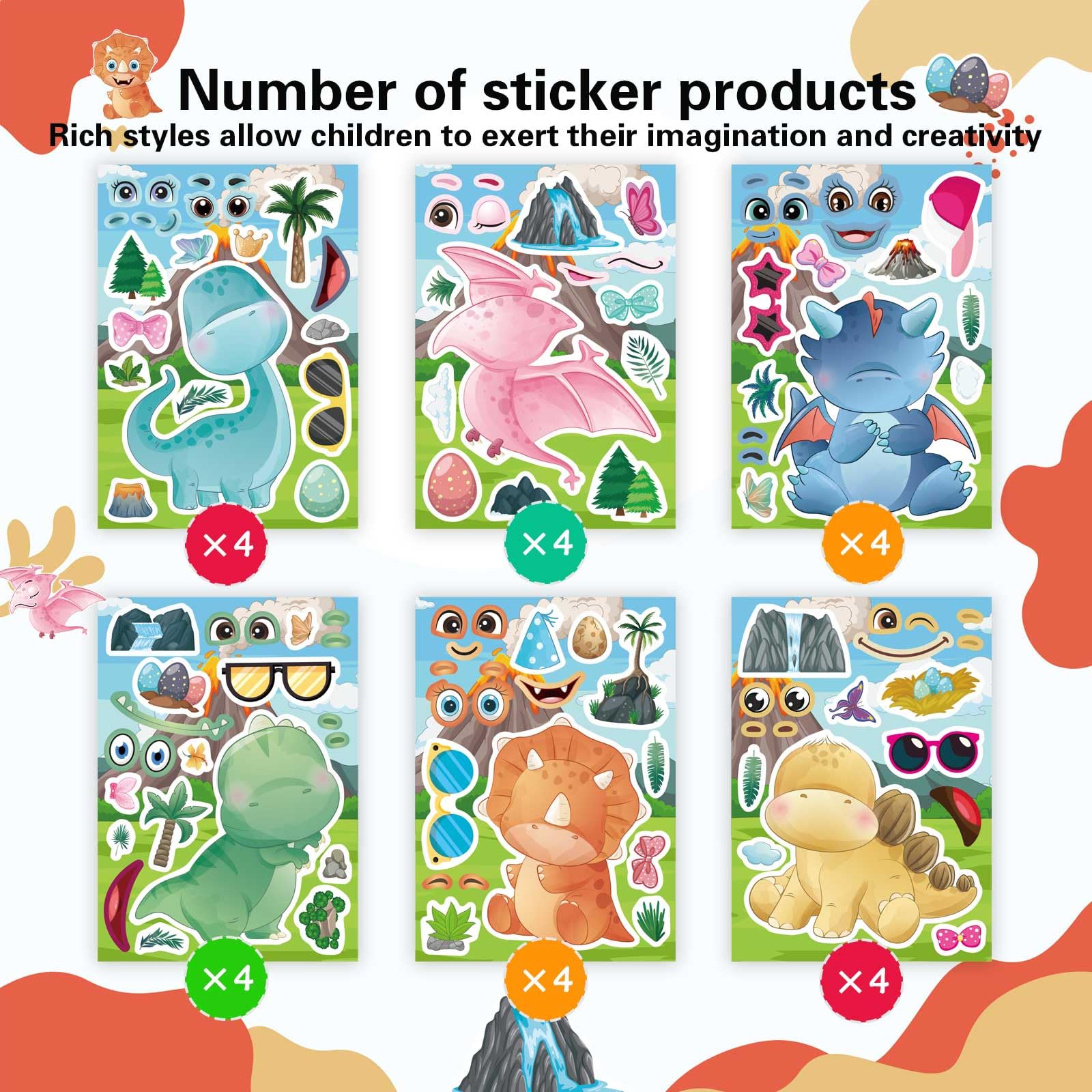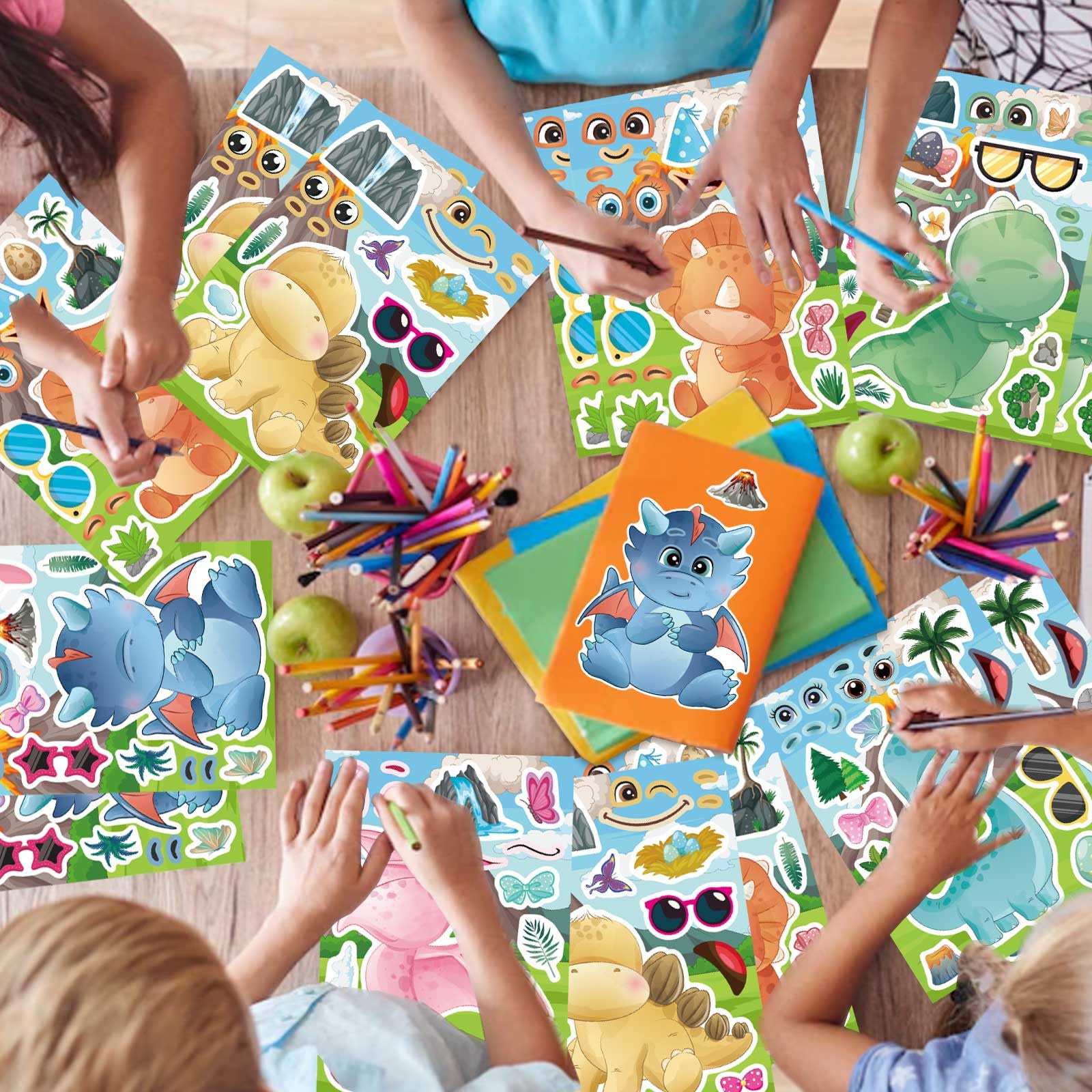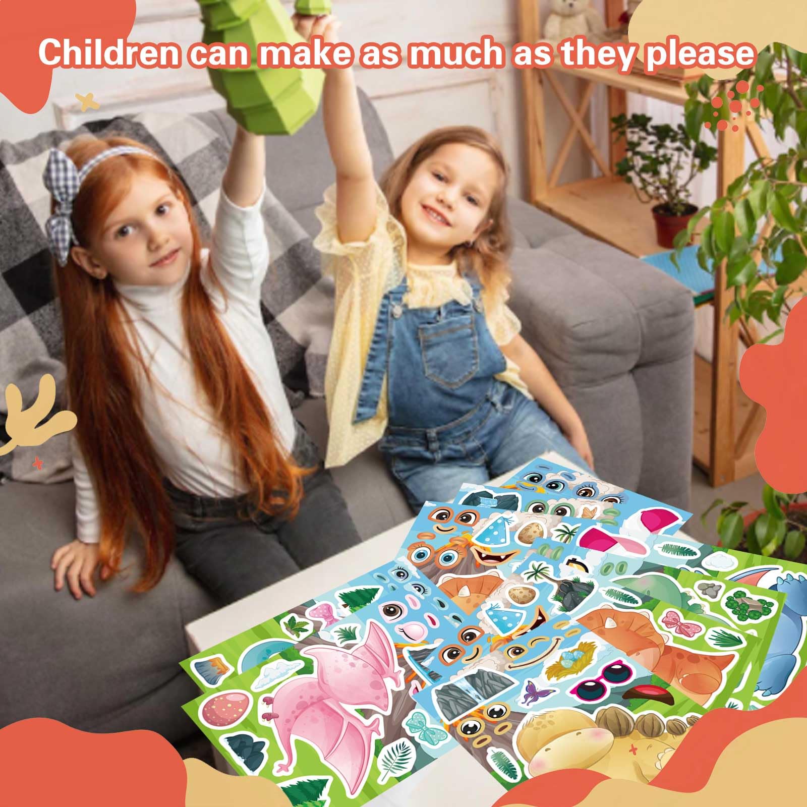 🦖【Dinosaur Party Favor Supplies】DIY dino craft stickers for kids to make their own dino. It stimulates children's interest through fun dino theme face stickers, enhances their creativity、imagination and hands on ability.