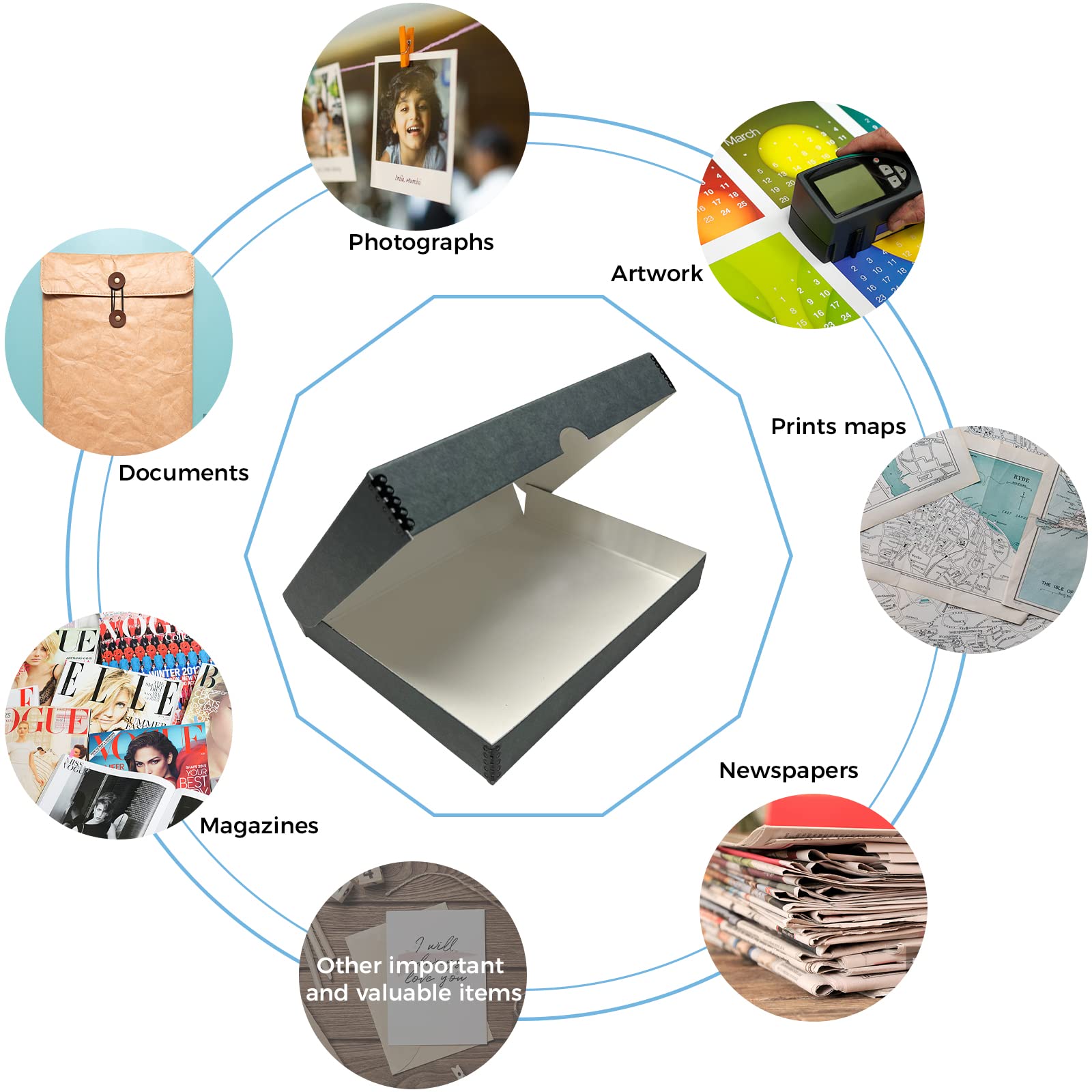 Overall Size: 9.5"x 12.5"x 1.75" fits up to 9" x 12" Documents, Newspapers, Certificates, Delicate Pictures, Important Prints, or Old Photos