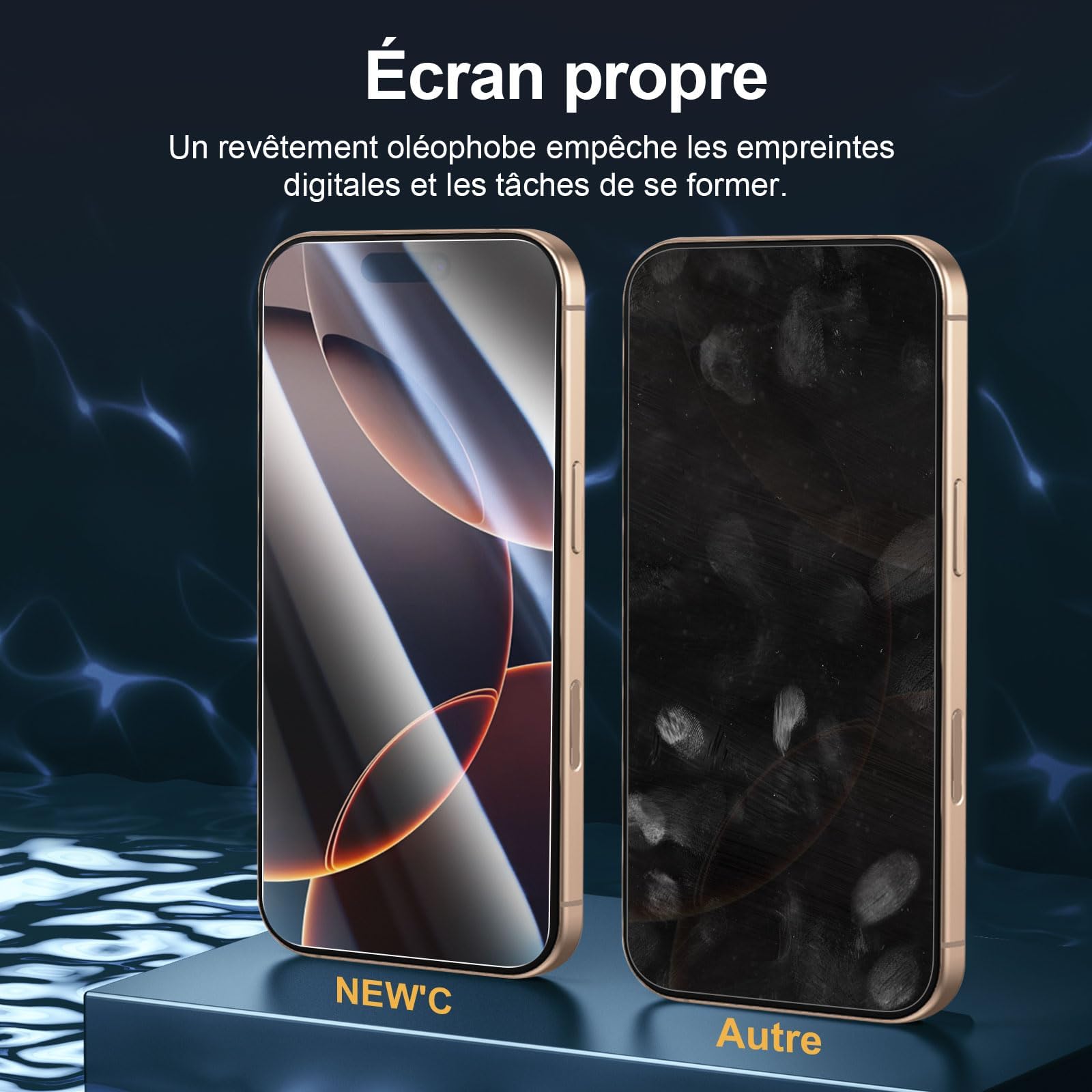 NEW'C 3 Pack Designed for iPhone 16 Pro,iPhone 17, 17 Pro Screen Protector (6.3 inches), Enhanced Tempered Glass Protection with easy installation tool included, Case Friendly