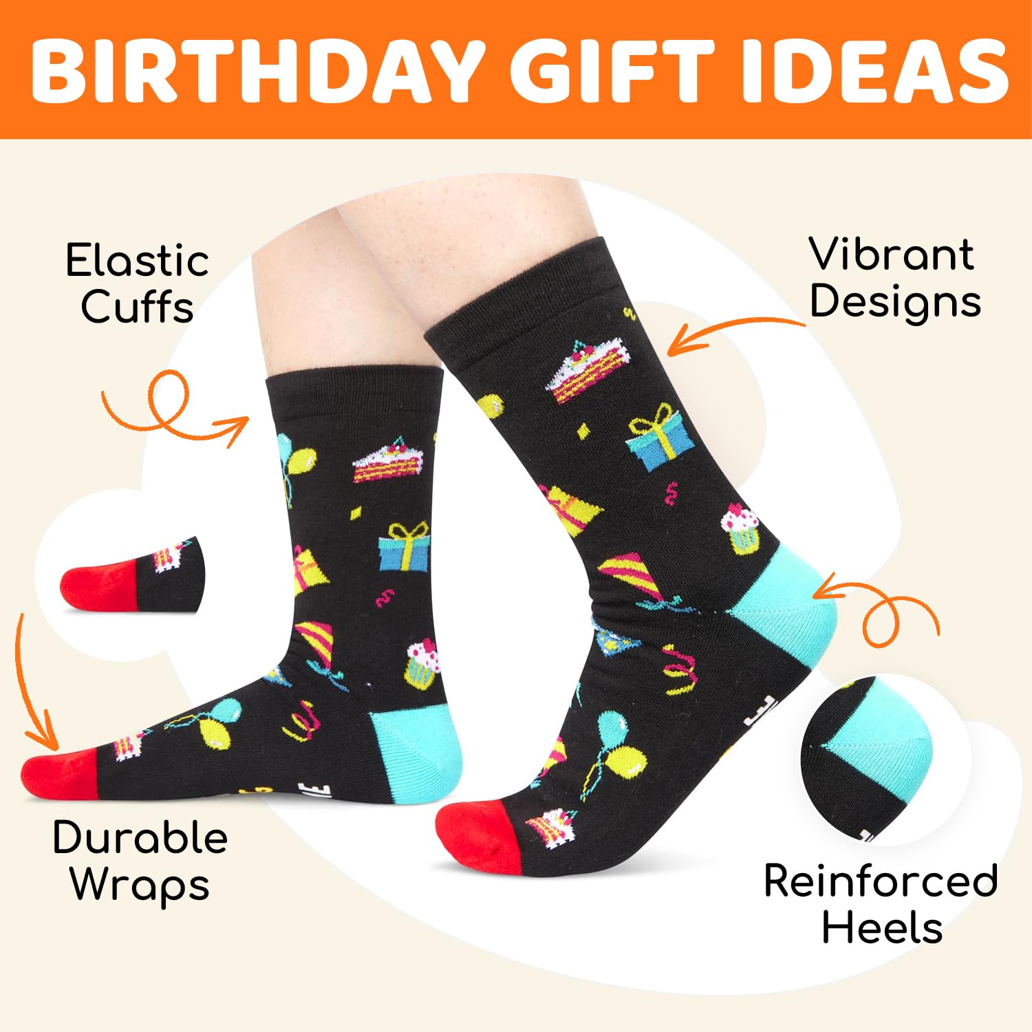 SIZE & PACKAGE: These fun and crazy socks are designed to fit most teen boys' US sizes 6-13 and most teen girls' US size 7 and up. Each pair comes in a special birthday gift box, ready for giving