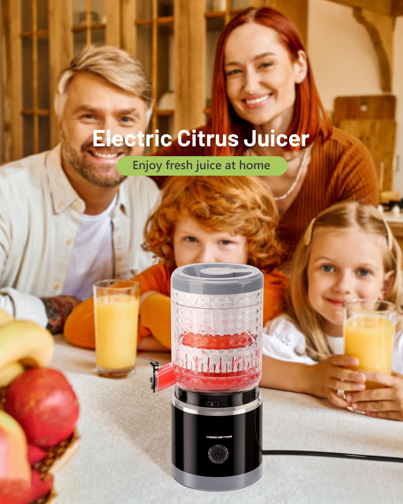 Squeezed Citrus Juicer: KEENSTAR Electric citrus juicer can quickly & accurately squeeze out the juice from citrus, leaving only a peel with a little pulp. Making of a delicious juice won't bring absolutely any inconvenience. 90W powerful motor extracts juice fully & works. It'll help you to live a healthier life.