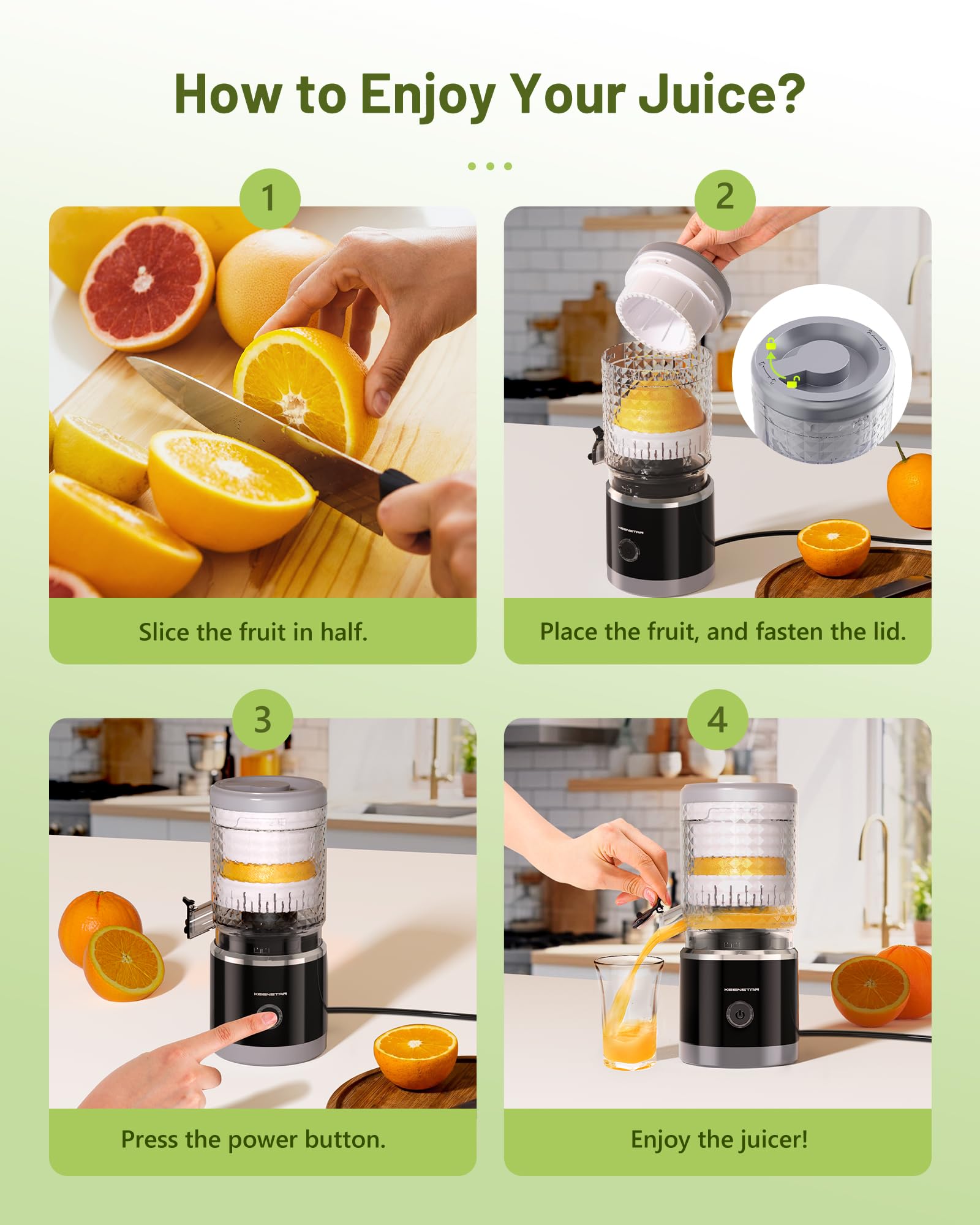 Hands-Free One-Touch Operation: Automatic orange juicer with one-touch button can free your hands , making fresh & healthy drinks at home has never been easier. With much less effort than manual juicing. Compact design makes it easy to store.