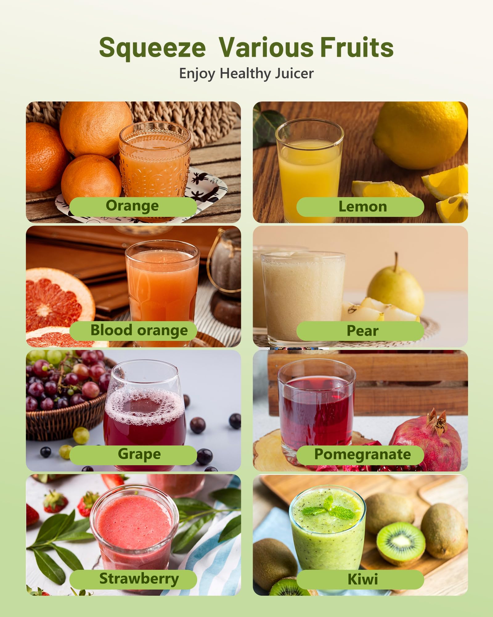 High Juice Yield: KEENSTAR citrus juicer extracts the maximum amount of juices with high proteins & vitamins from citrus fruits (≤3.8" diameter) including limes, lemons, oranges and grapefruits and fruits with less fiber and more juice including pomegranate, watermelon.