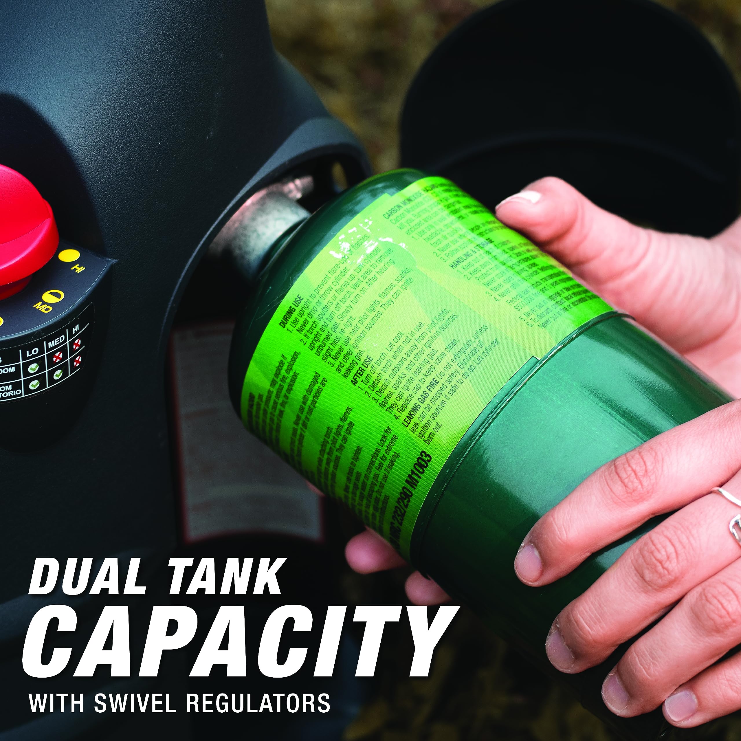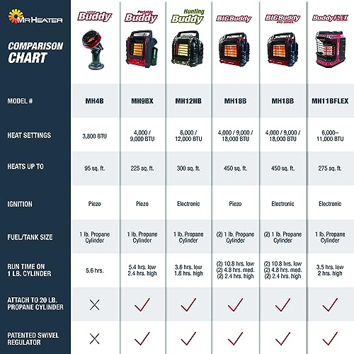 Low, medium and high heat level control knob for steady temperatures; connects to propane tank (not included). Note- Due to recent governmental changes to import tariffs, Mr. Heater has removed the fan on some models of the Mr. Heater Big Buddy (MH18B).
