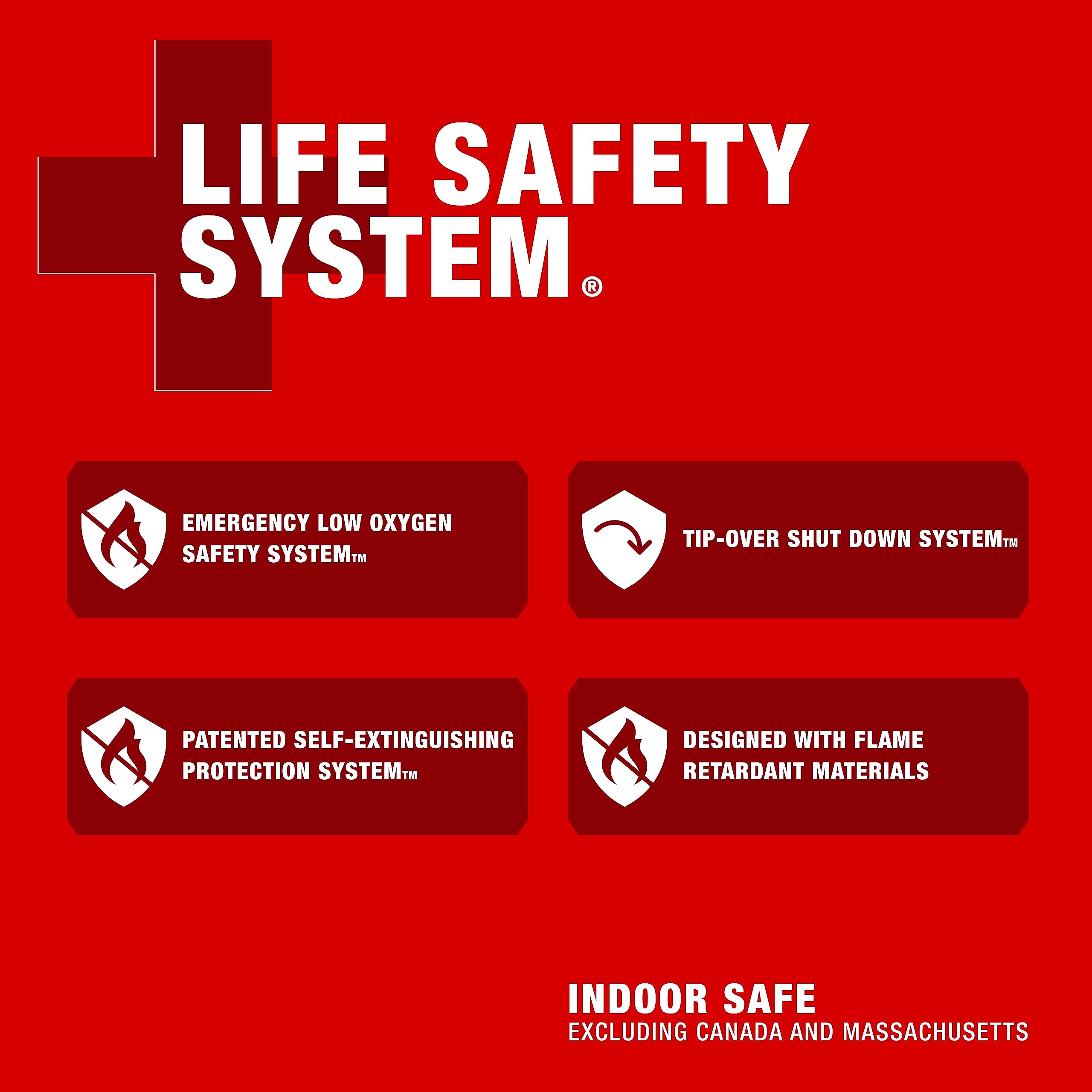 Auto shut-off if tipped over, if pilot light goes out, or if detects low oxygen levels