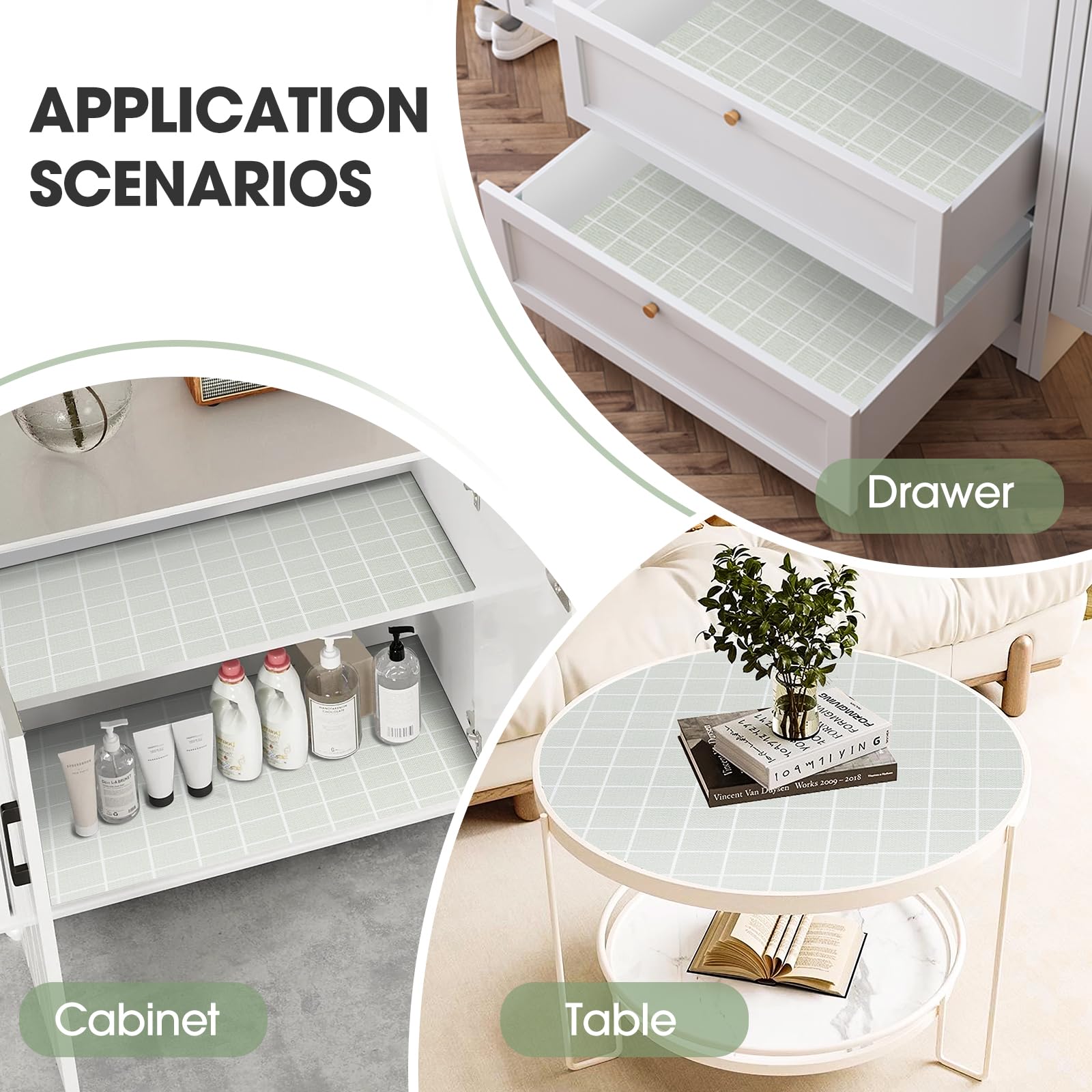 Organize Your Home:Personalized Flourish: Whether adorning your kitchen shelves, bookshelves, or cabinets, the light green plaid shelf liner offers a personalized touch that expresses your unique taste