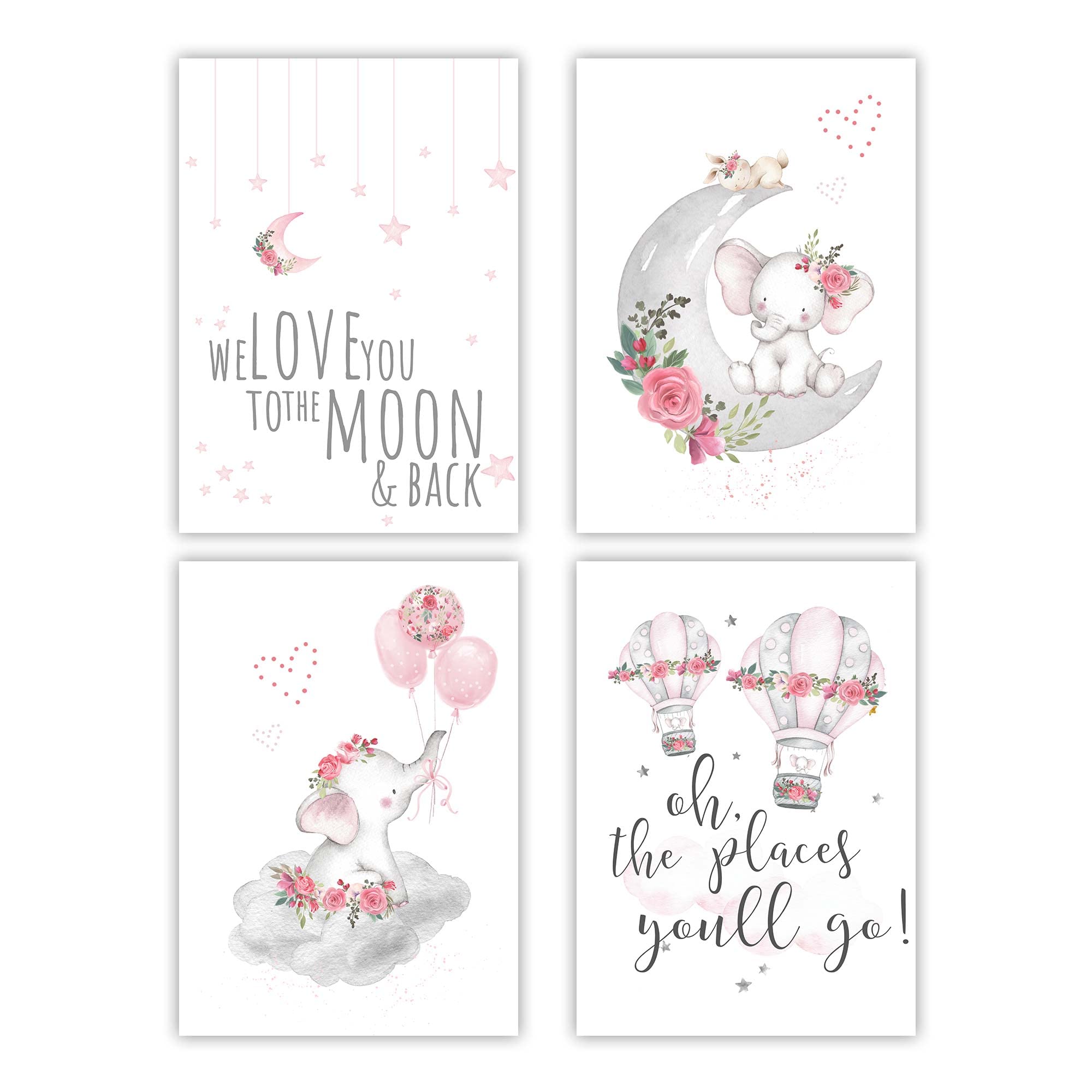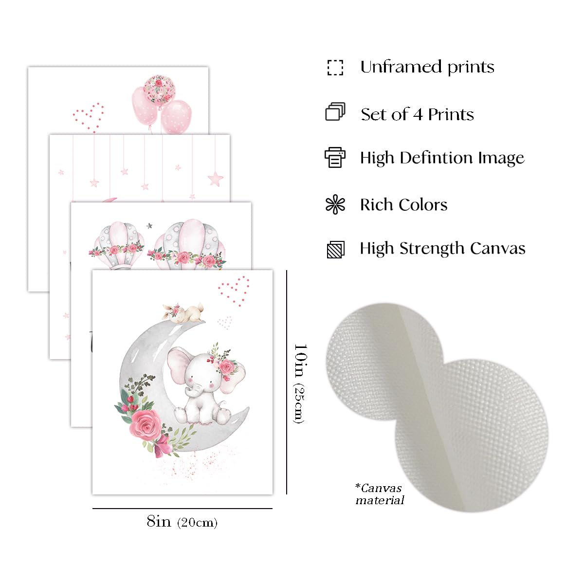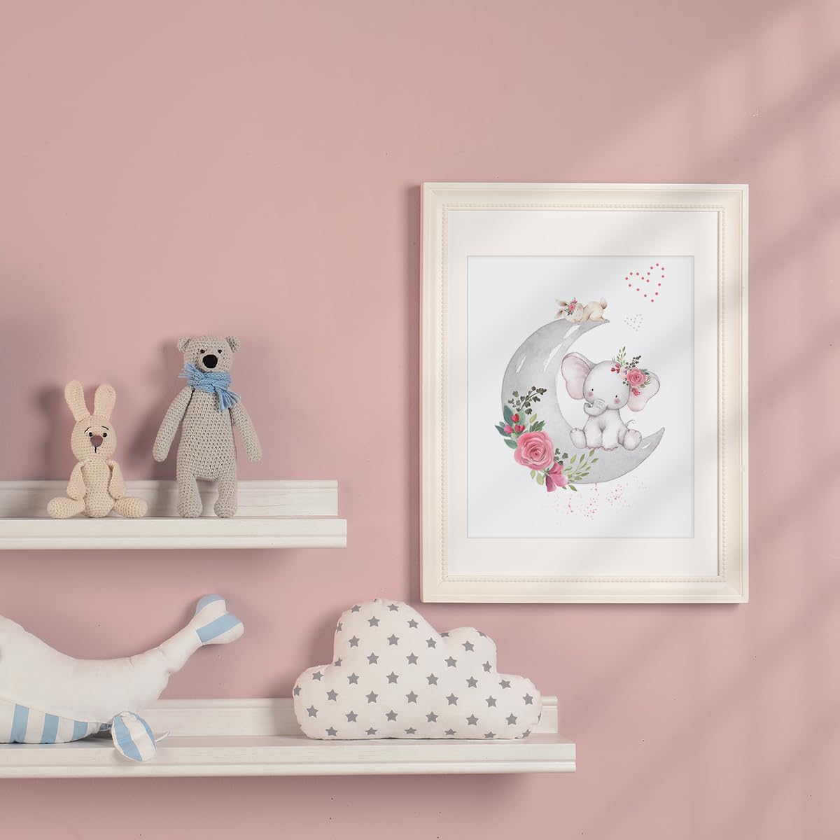 ✔ This is a set of 4 small elephant wall decor:Your baby will love this cute little elephant wall art. We have made thousands of customized posters for the children, and they all like them very much.
