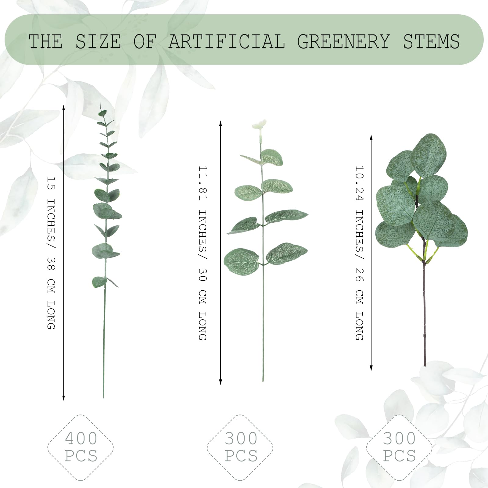 3 Kinds Mixed Eucalyptus Stems: you will receive 1000 pieces of eucalyptus greenery stems in 3 different styles, they are different in shapes and sizes, the ample quantity can certainly meet your wedding table decorative needs, making your wedding more romantic and eye catching