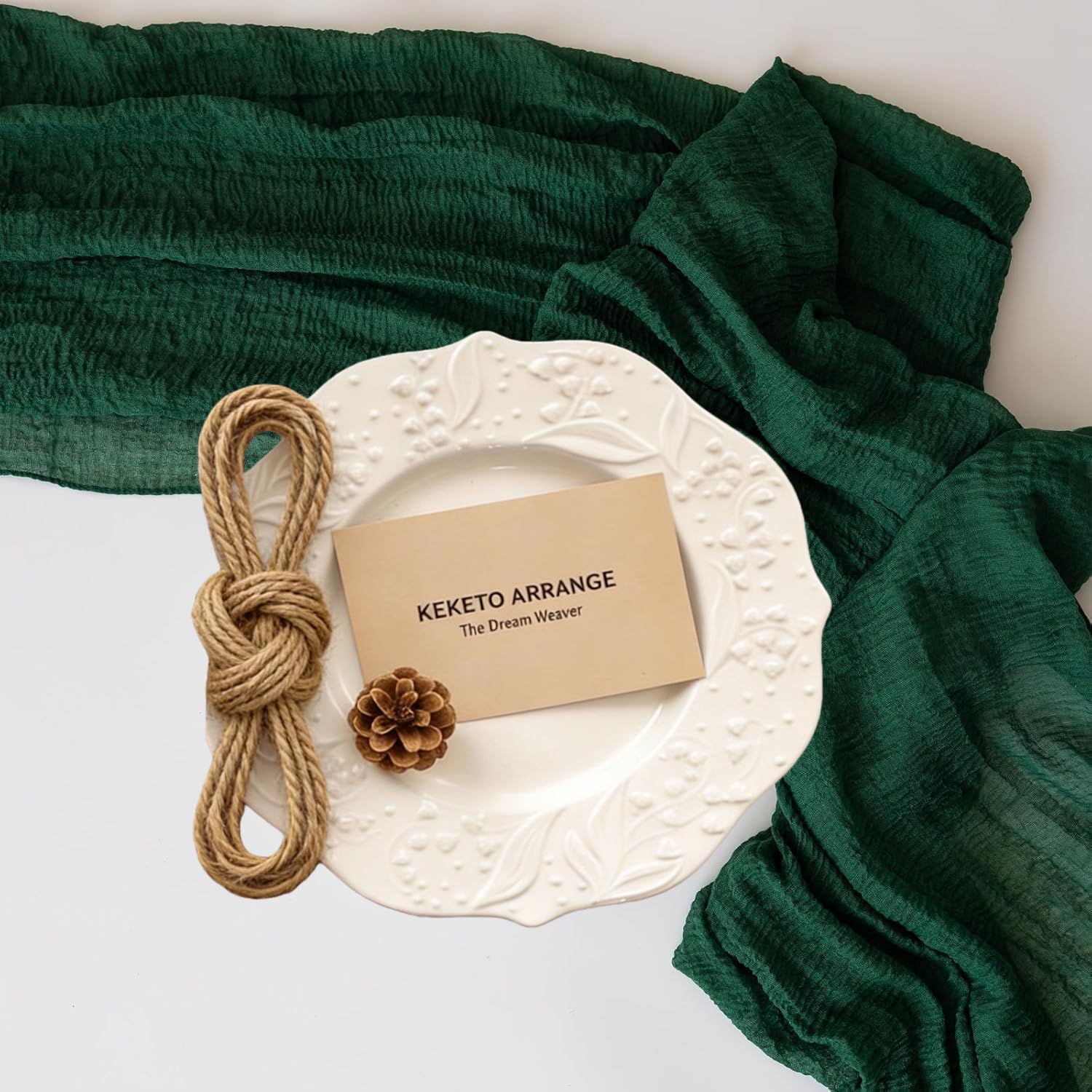 【Package Includes】1 Table runner (35 x 120 inches) and 1 natural jute rope(40 Inch), all neatly packed in a transparent plastic bag. This versatile runner is designed to fit most table types.
