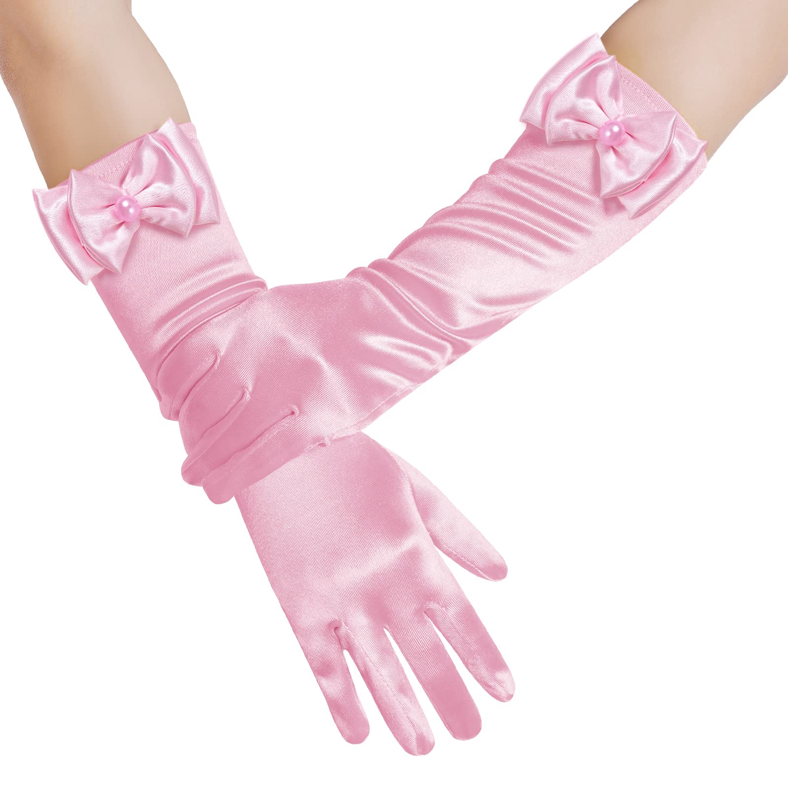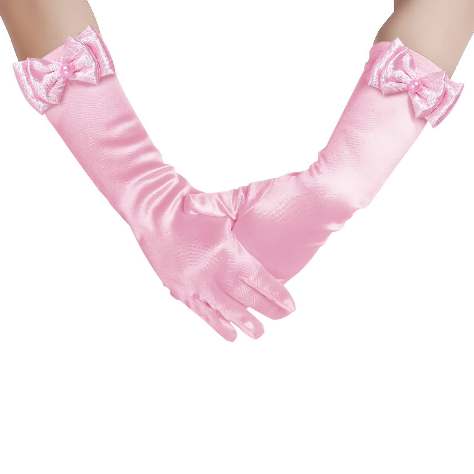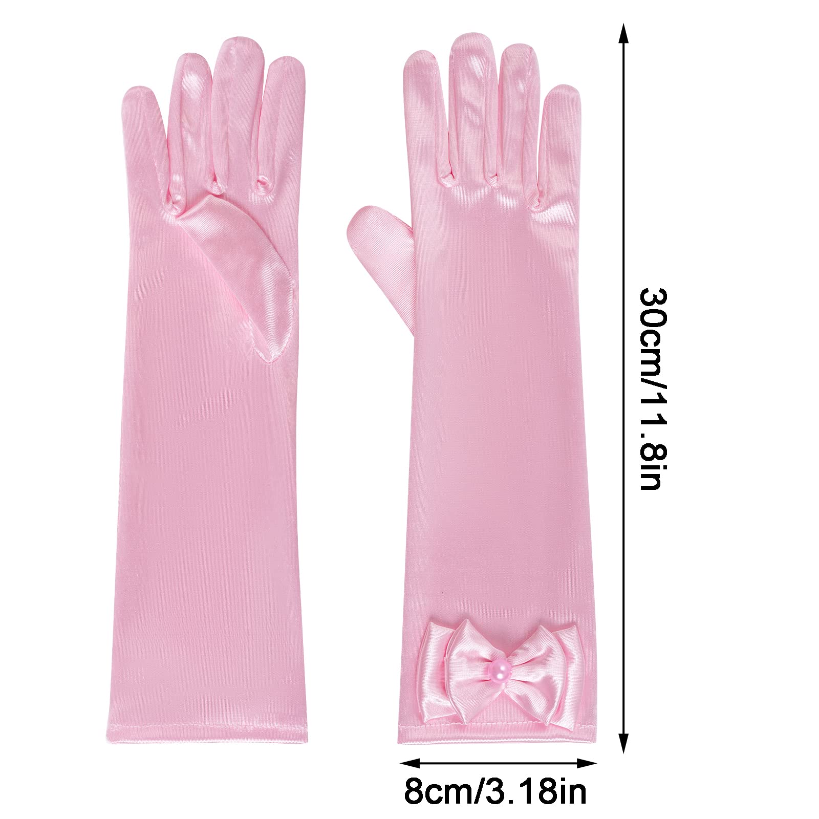 Description Features: Stretchy bow-knot girls' gloves fit children age 4 years up to 8 years old. The quality fabric is stretchable to fit a variety of sizes Easy to clean and maintain Lovely and classic gloves is a great girls accessories Suitable for little girls in Parties, Wedding, Formals Events, Performance or Costumes Package Included: 1 pair of girls gloves