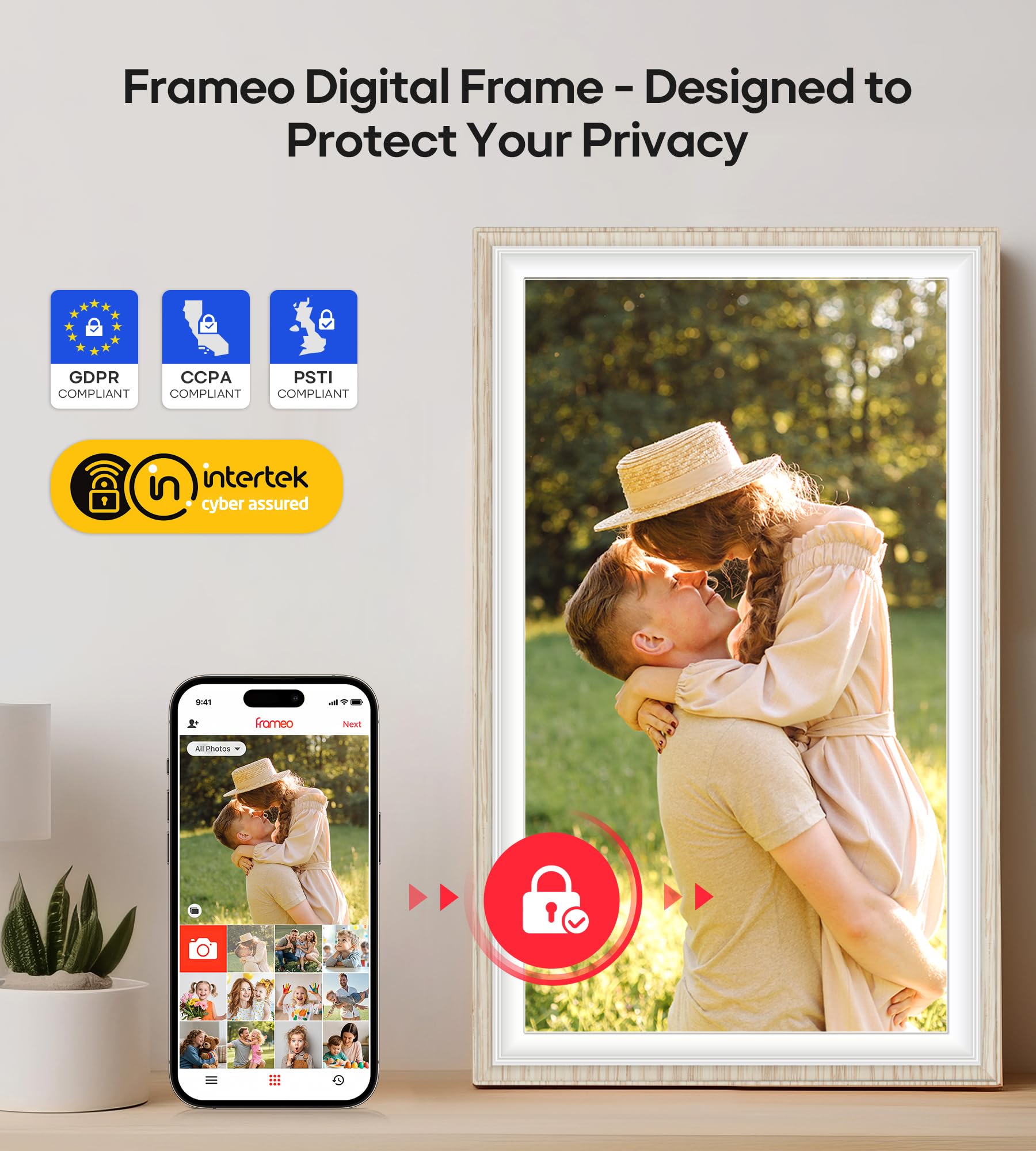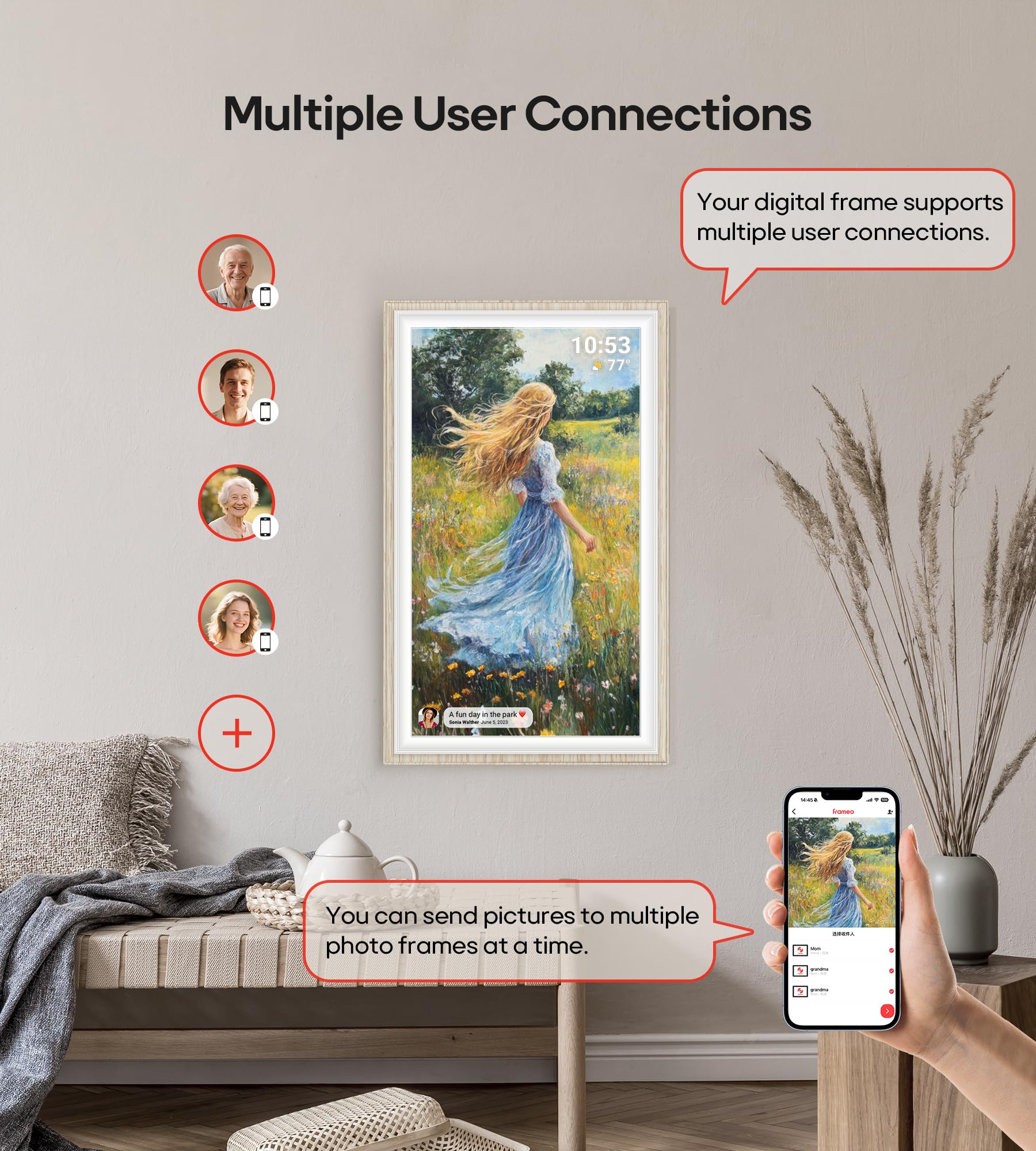 【Secure & Easy to Use】 Frameo is a professional photo management application that originated in Denmark with millions of users and is known for its security. No one can access your digital frame except the users you added. Easy to use and not limited by distance. You can use the "Frameo" APP to bind multiple frames and send photos and videos to different frames. You can also let multiple people join your frame and send you photos and videos, so families can share happy moments with each other