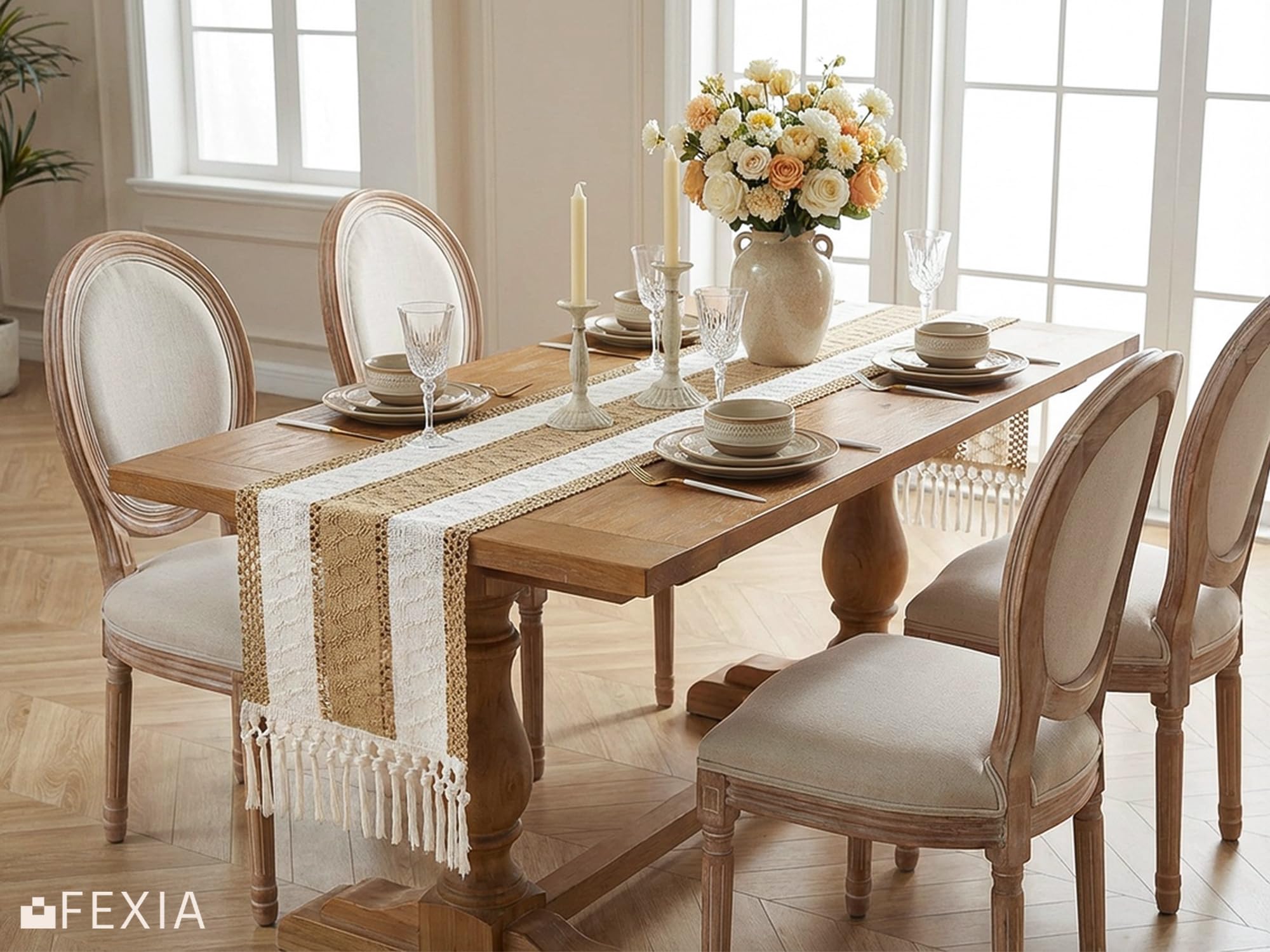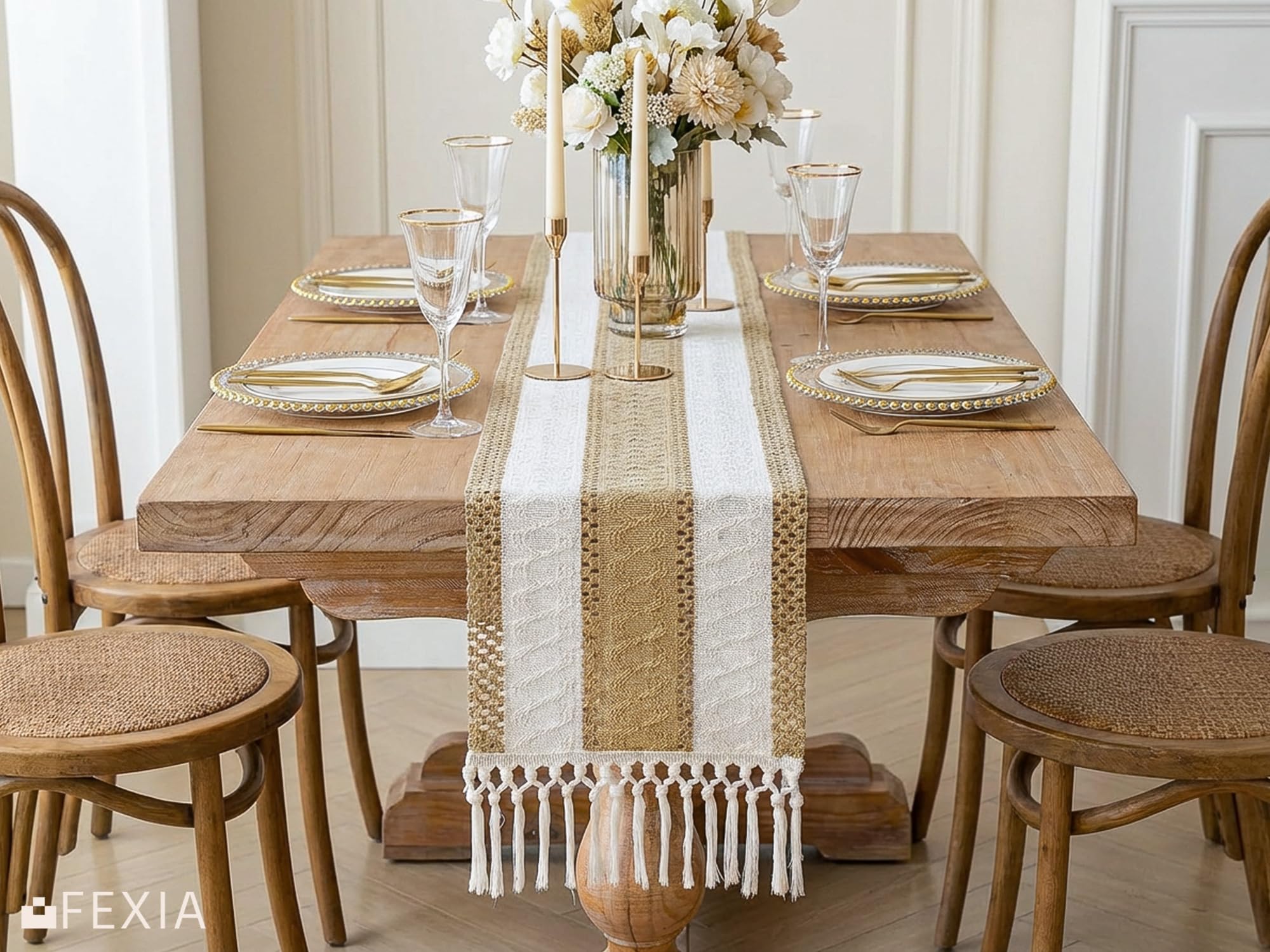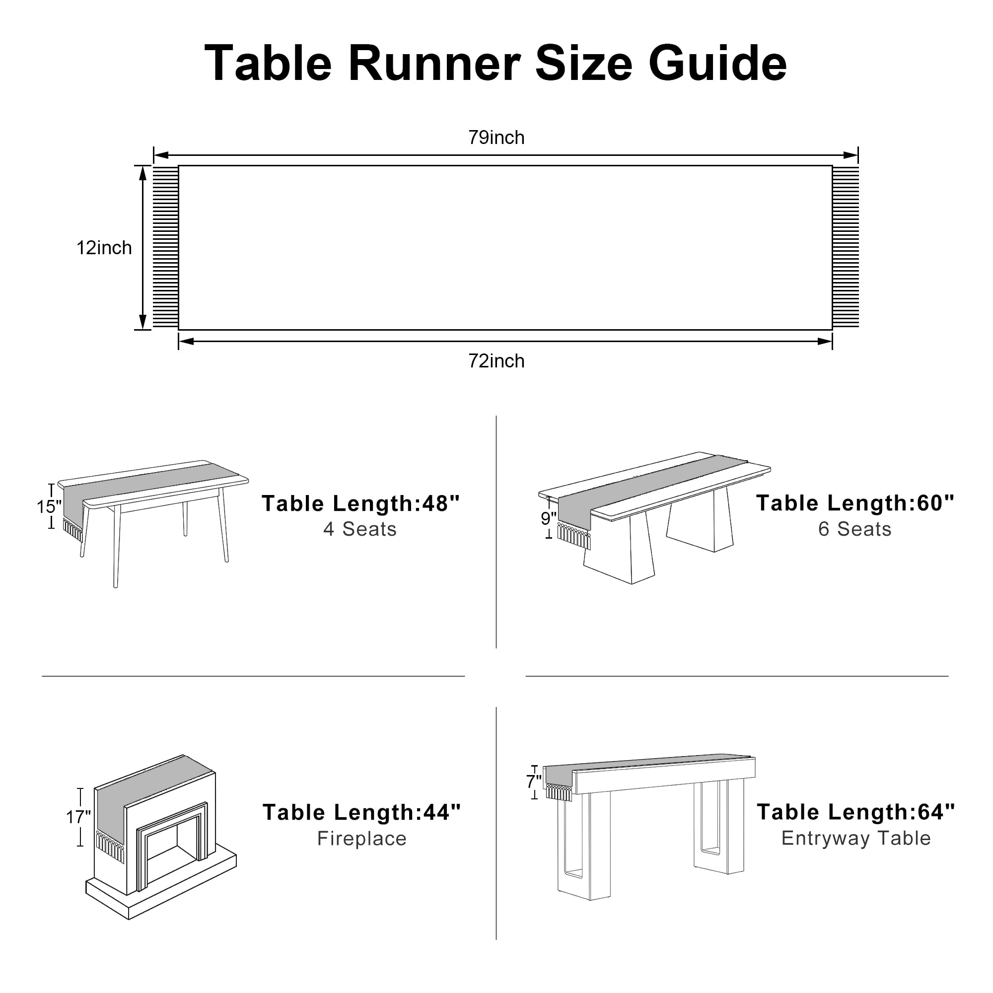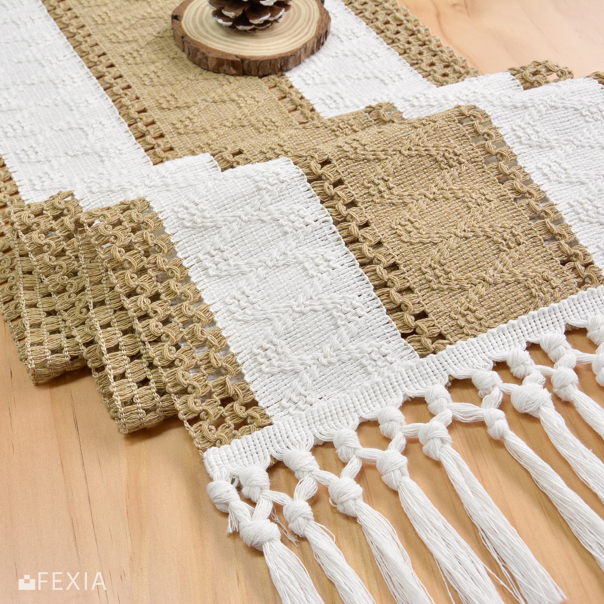 [Perfect 72 Inches Long] Our macrame table runner with tassels measures 12x72 inch, fits a dining table that seats 4-8 people. It can give your tables a rustic and boho look. (Because it is folded in the bag, when you take it out, the table runner will have creases, which will affect your measurement. So, please make sure the table runner is placed neatly and flat before measuring)