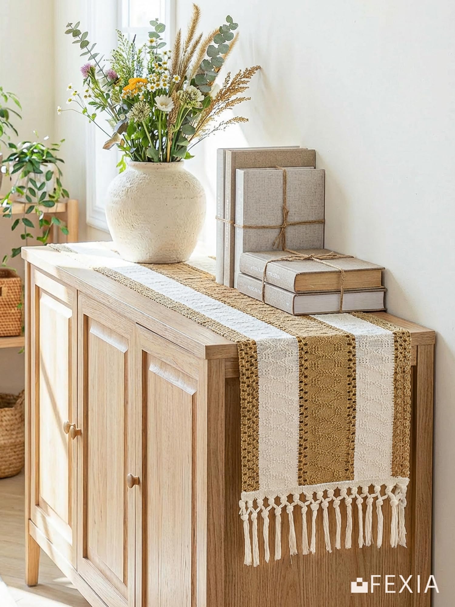 [Boho Home Decor] The farmhouse table runner is not only suitable for boho dining room decor,house decor,kitchen decor, bedroom decor, book desk, storage table, coffee tables, but also good for piano top, TV stand, bookshelf and more place