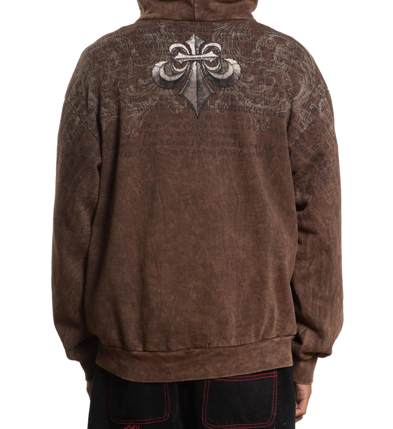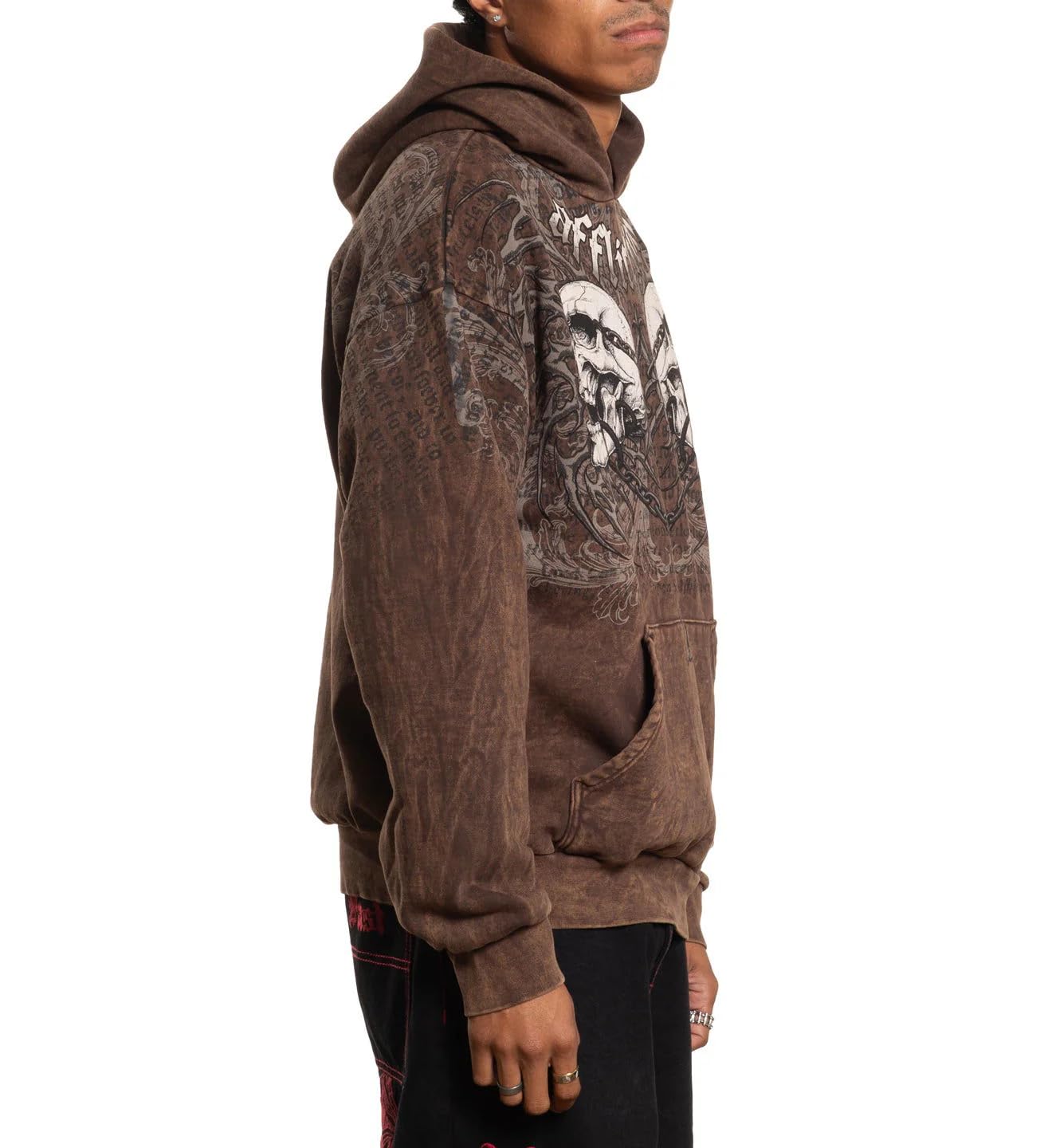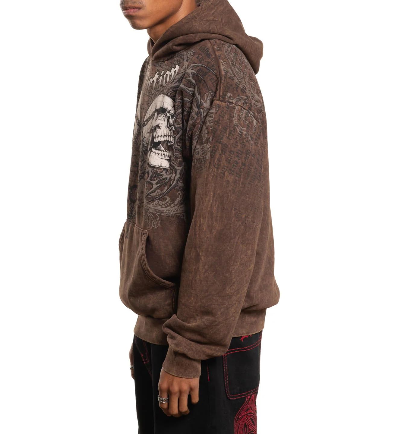 DESIGN FEATURES: Gothic-inspired pullover hoodie featuring dramatic graphic print.