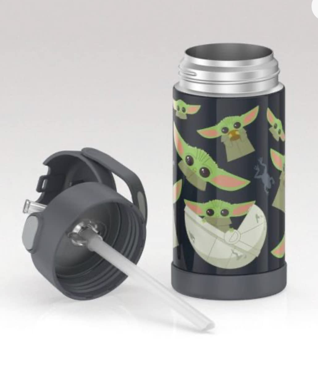 The FUNtainer® 12oz Vacuum Insulated Stainless Steel Water Bottle with Straw keeps drinks cold for up to 12 hours. Our kids water bottles are built so their drinks are as cool on the inside as they look on the outside. Kids stay hydrated and parents stay happy. The double wall stainless steel construction is built to handle drops, dings and assorted roughhousing. Includes an integrated carry handle with soft-touch grip, making it easy for kids to carry with them throughout the day. Includes a hygienically covered silicone straw which is removable for easy cleaning. To clean, you can pop your FUNtainer water bottle in the dishwasher; however hand washing is recommended. Not for use with hot liquids.
