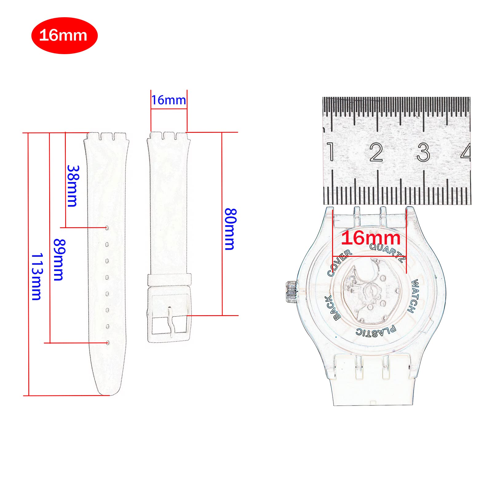 High Quality Materials: High quality rubber material, waterproof and sweatproof, dust-free replacement 16MM compatible swatch watch band